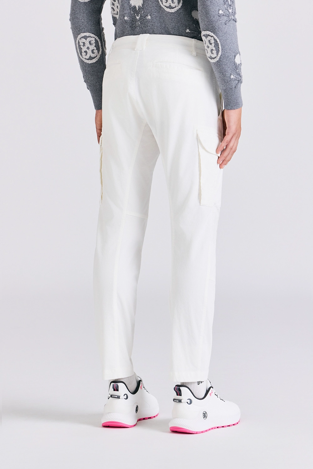 CORDUROY SLIM CARGO PANTS MEN-WHITE