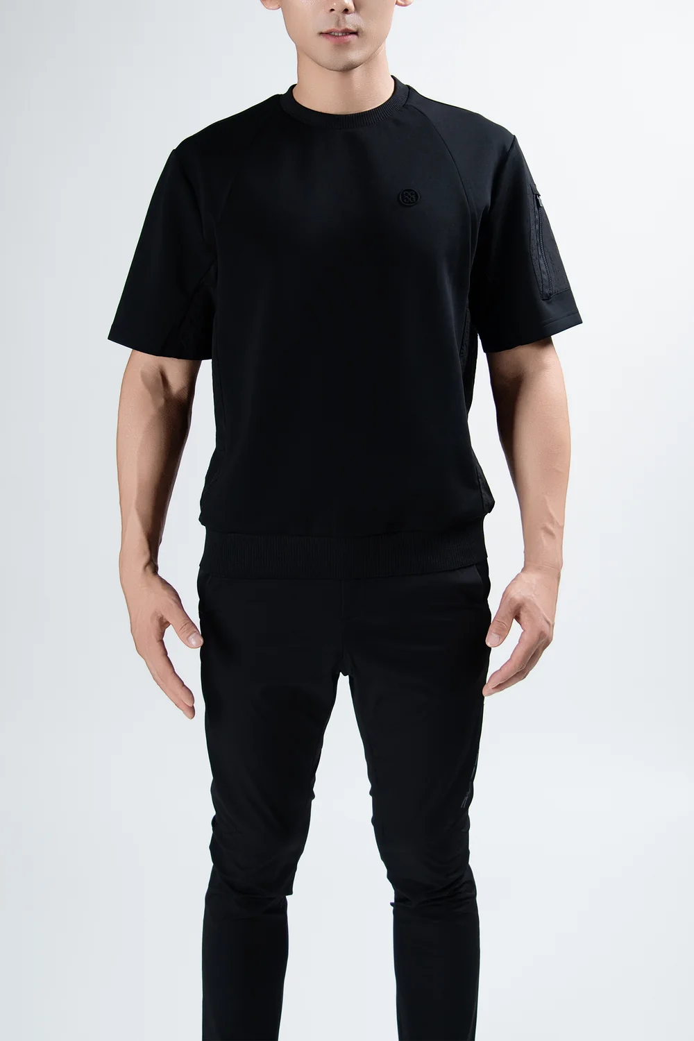 밑단 시보리 디테일로 착용 편의성을 개선한 라운드넥 티셔츠 스타일
