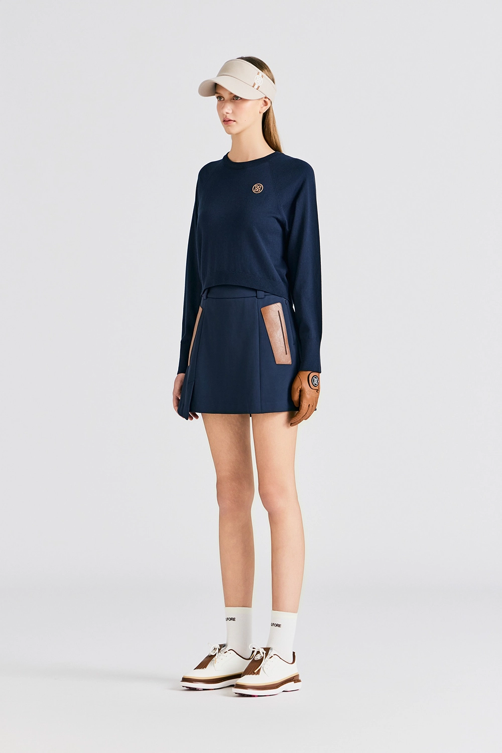 LEATHER PATCH SKIRT WOMEN-NAVY