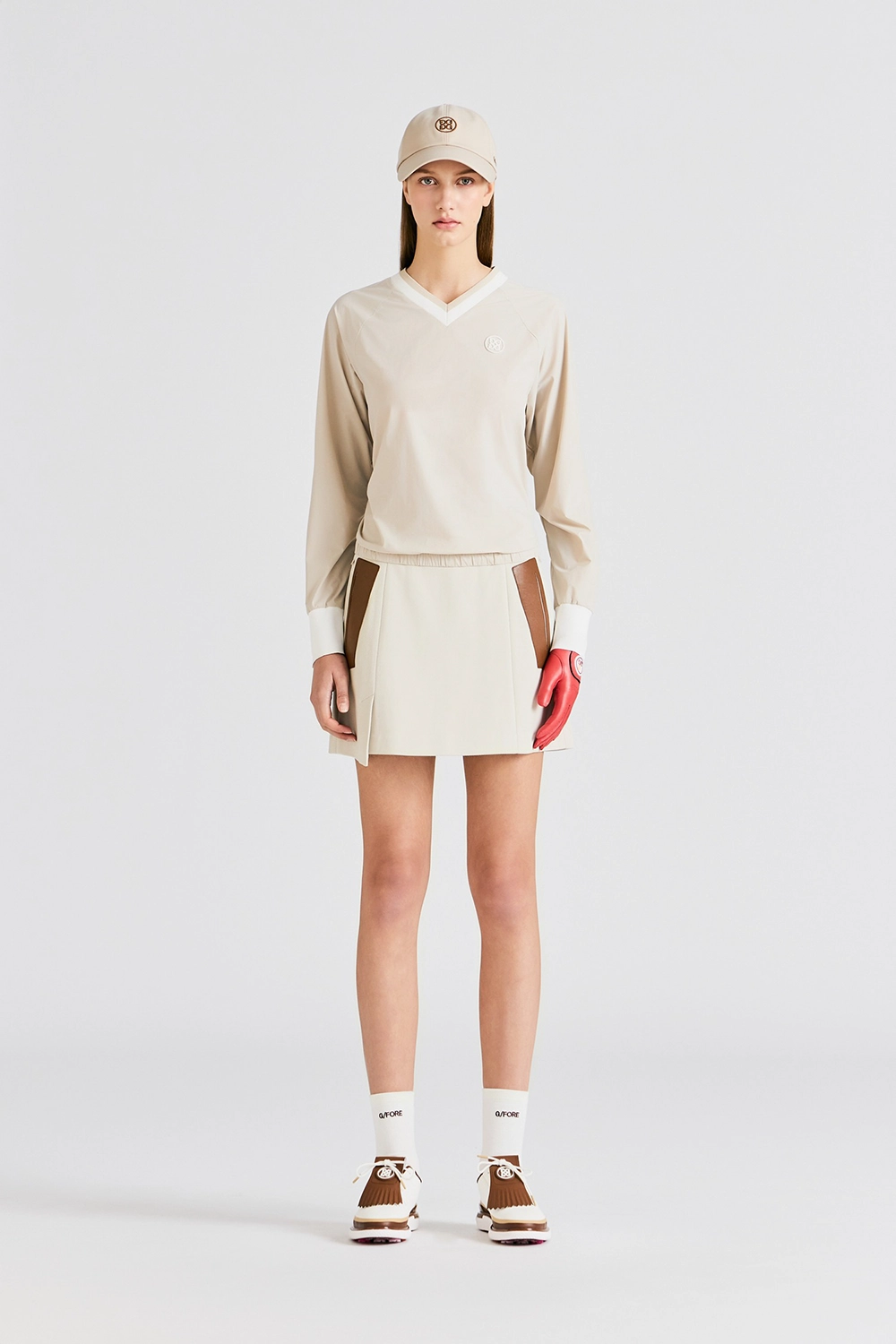 LEATHER PATCH SKIRT WOMEN-BEIGE