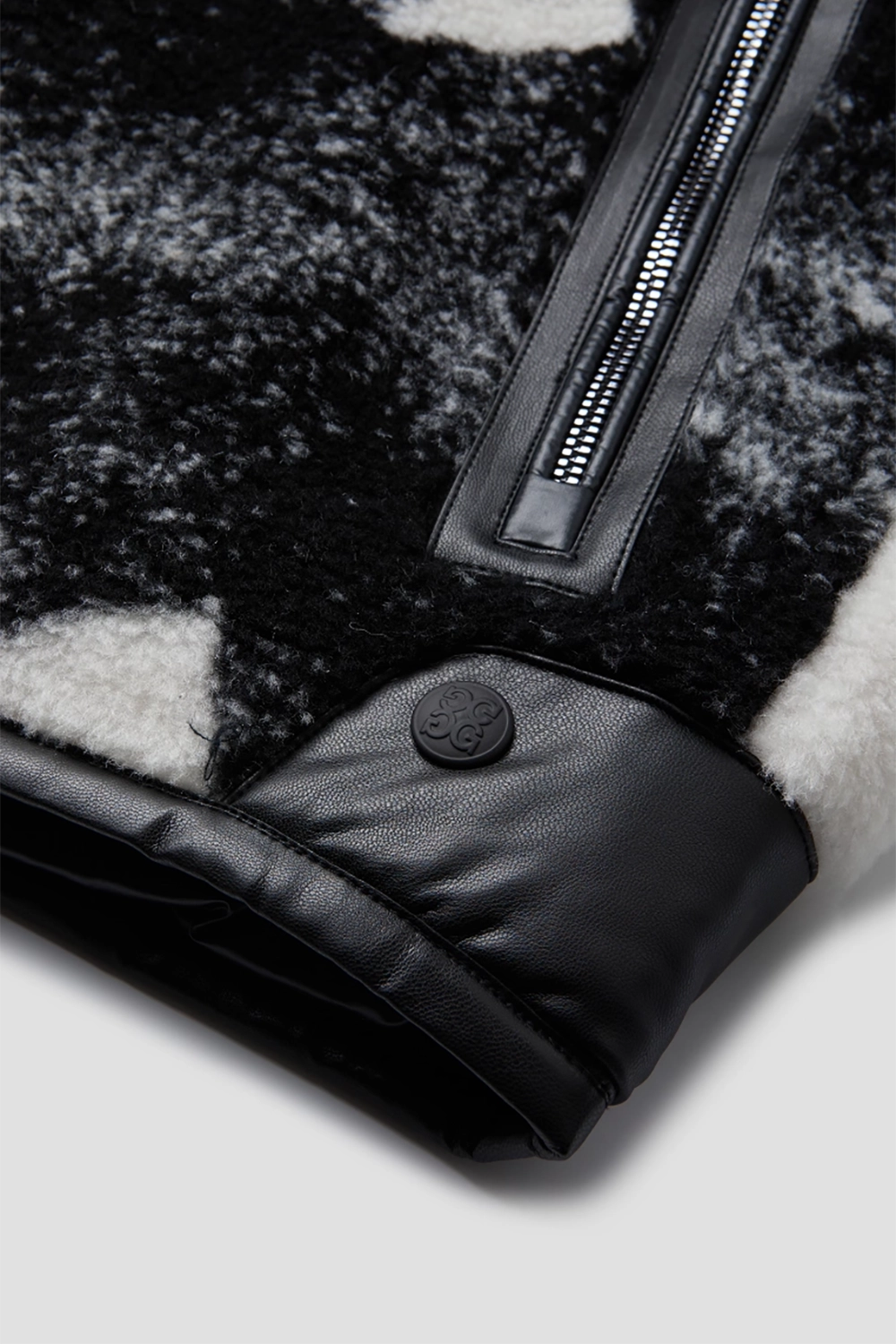 부드러운 양모 소재와 “스페이드” 패턴을 적용한 양면 착용 다운 베스트,