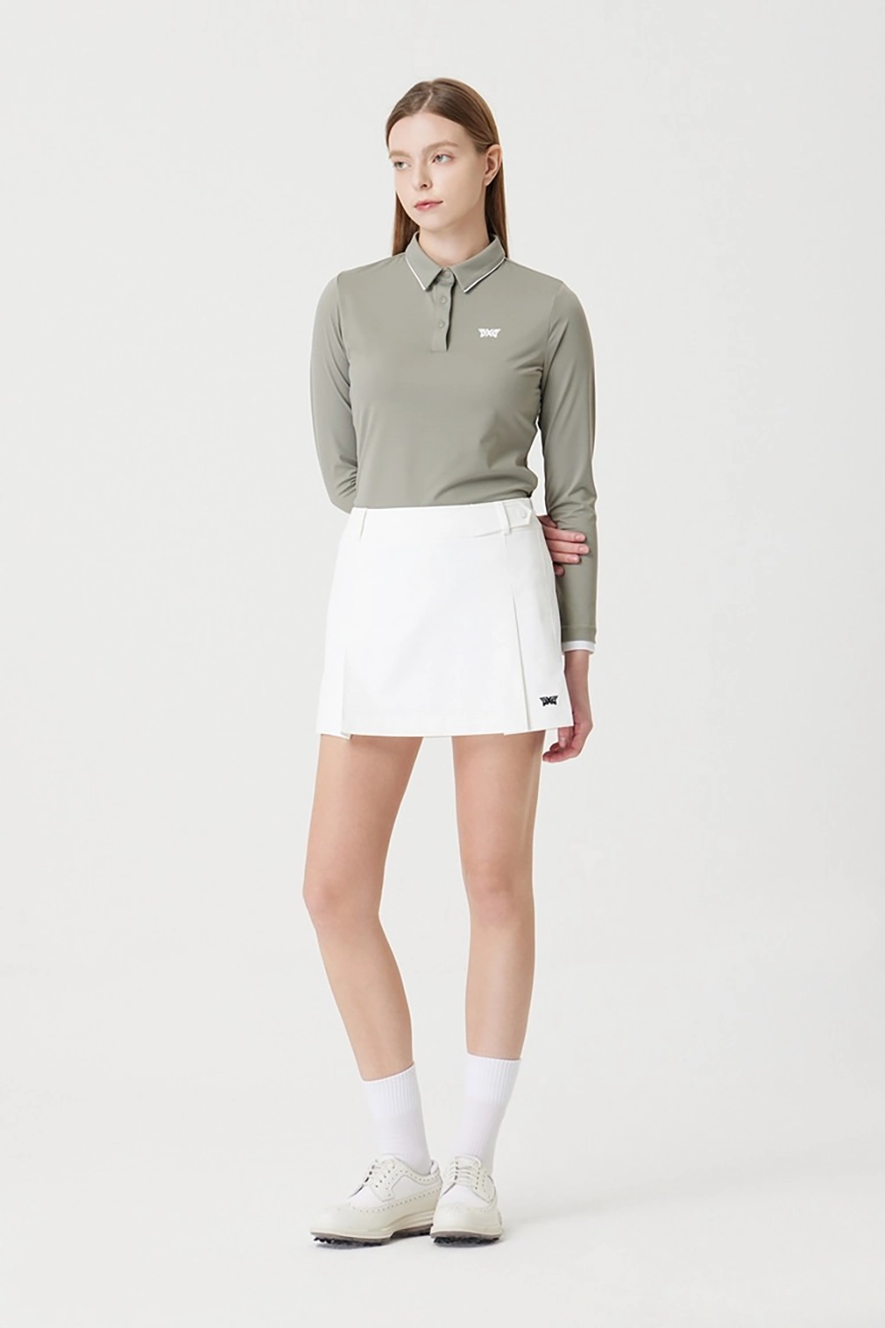 WOMEN SIDE PLEATED SKIRT-BEIGE