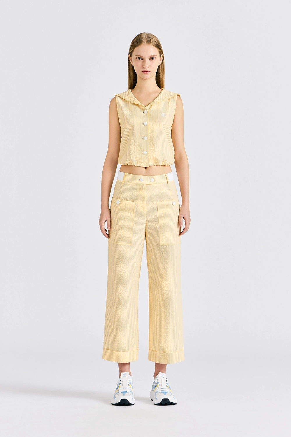 STRIPED POCKET PANTS WOMEN-YELLOW