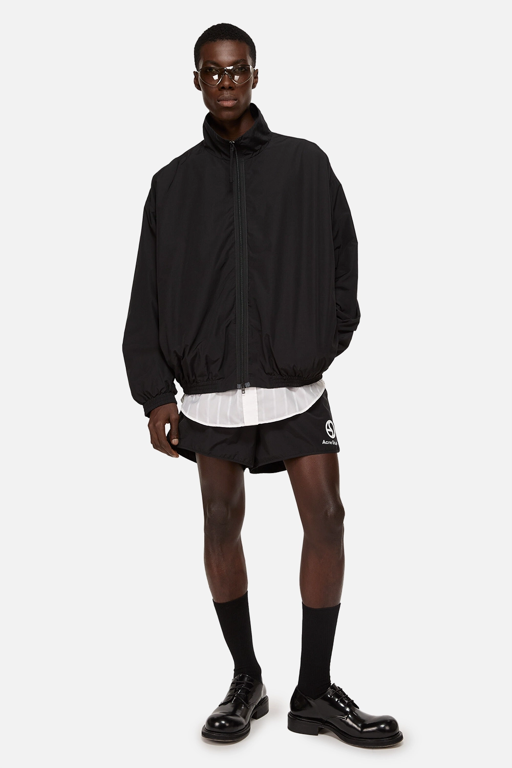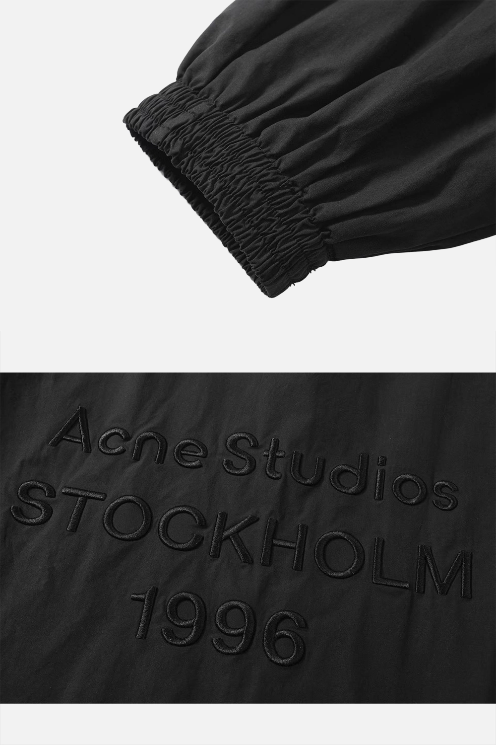 기술 면과 나일론 블렌드로 제작된 재킷으로, 촉감이清爽하고 고급스러운 스포츠 감각을 지녔습니다. 뒤쪽에는 Acne Studios 로고가 자수로 디테일 처리되었습니다. 릴랙스 핏으로 제작되어 허리 아래 길이를 갖추고 있습니다.