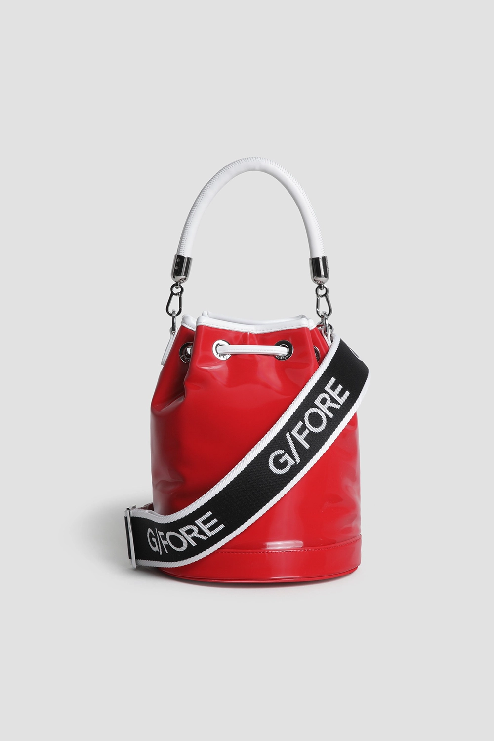 두께감 있는 파이핑 핸들과 탈착 가능한 스트랩 포함.