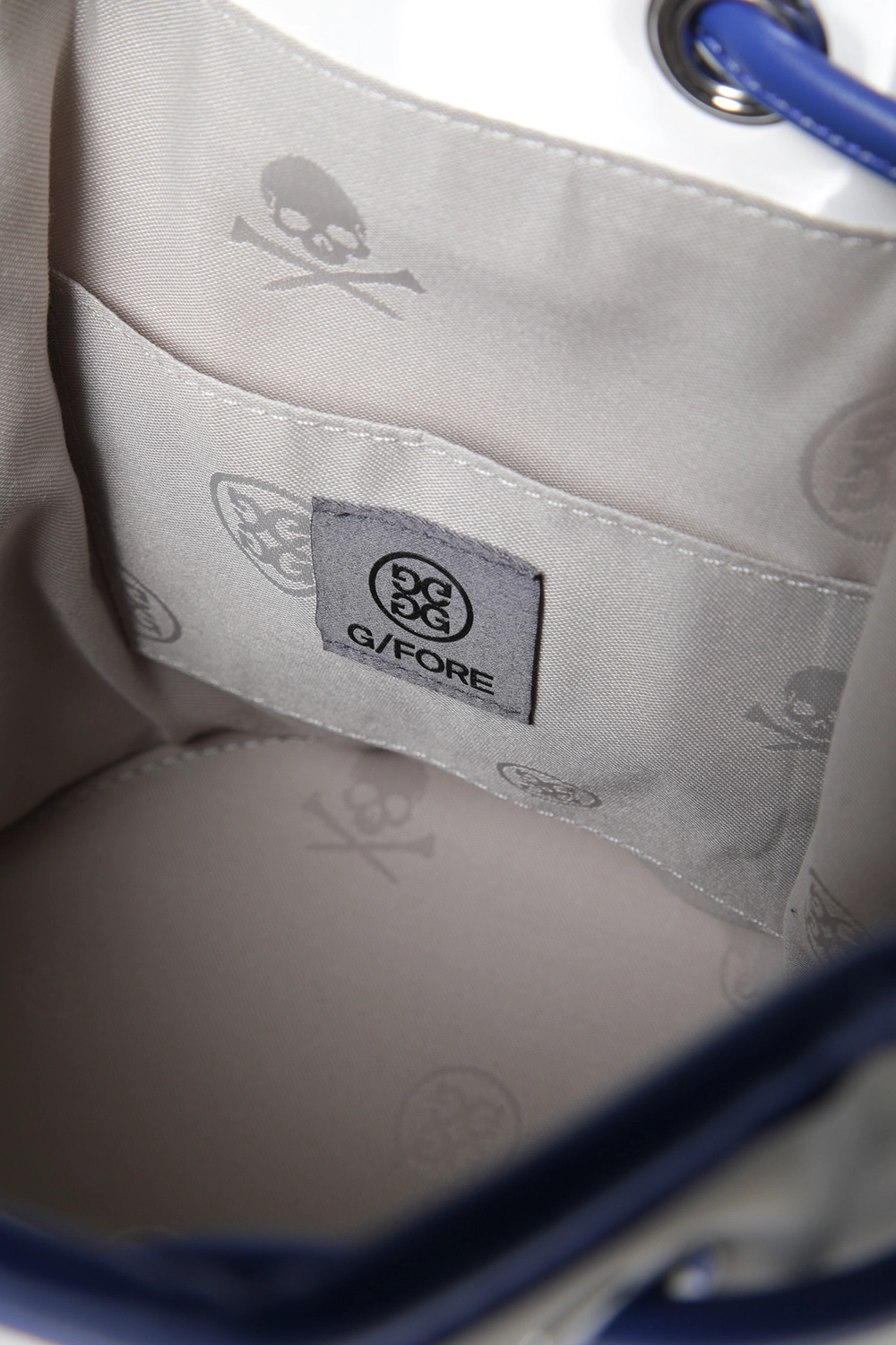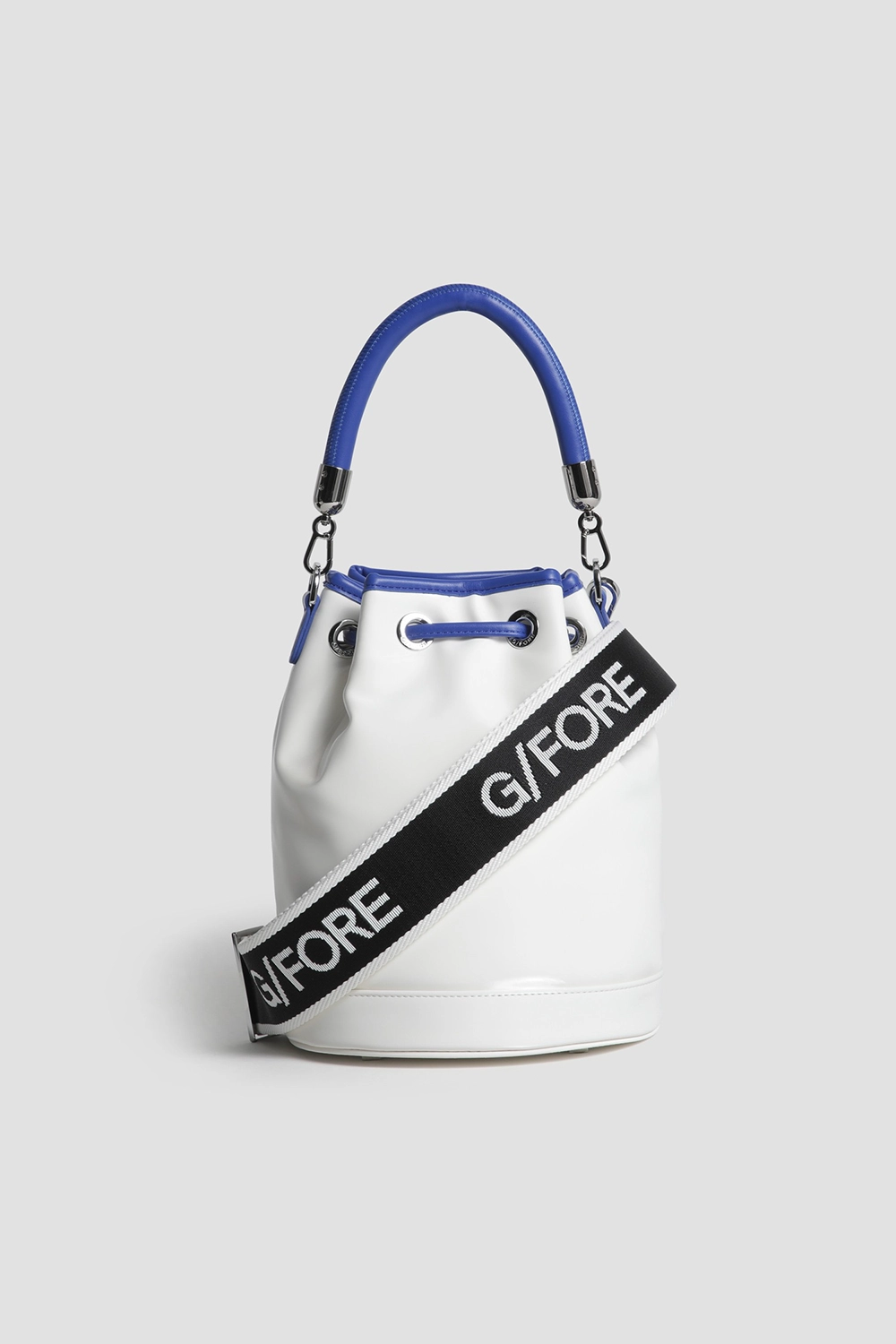 두께감 있는 파이핑 핸들과 탈착 가능한 스트랩 포함.