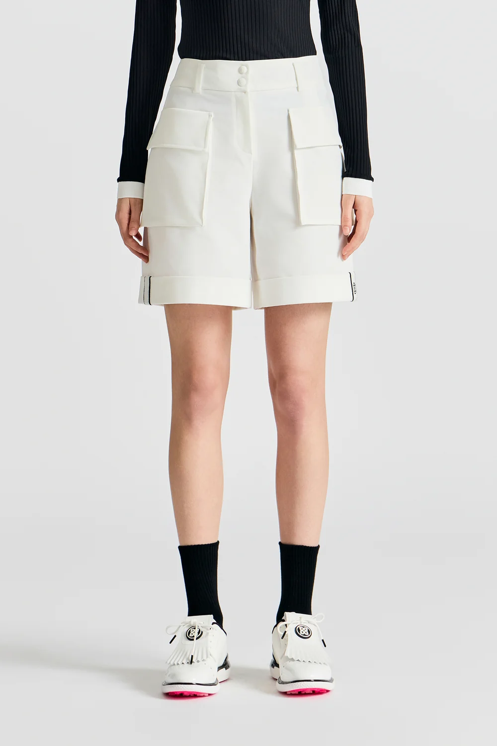 하이웨이스트 디자인과 카브라 디테일로 데일리로 착용하기 좋은 아이템.