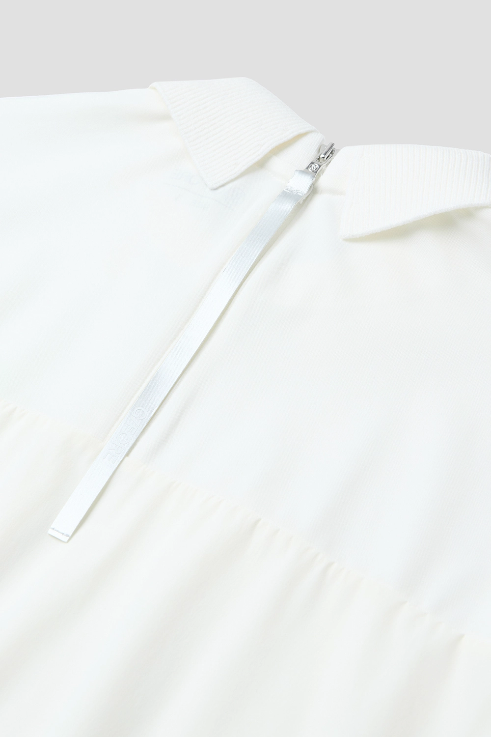 목 뒤 지퍼 디테일로 착용이 편리하며, 밑단과 소매단