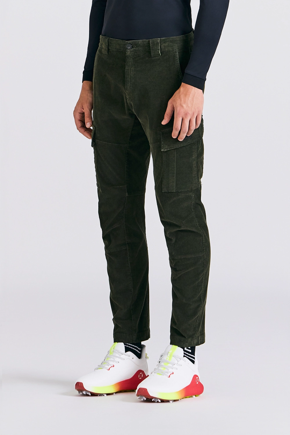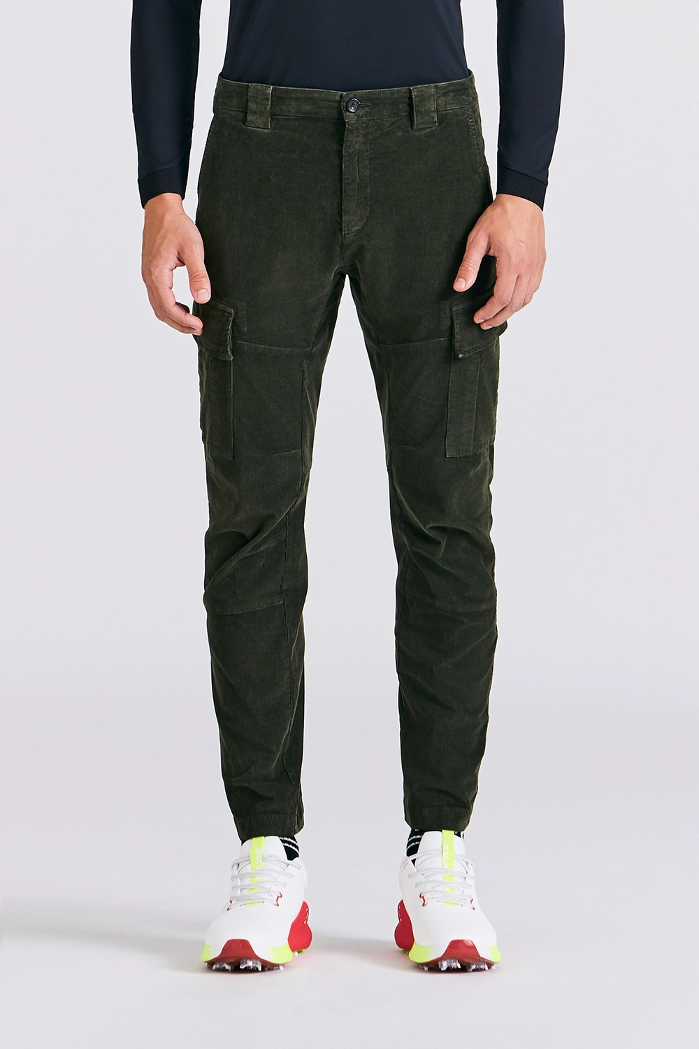 CORDUROY SLIM CARGO PANTS MEN-DEEPGREEN