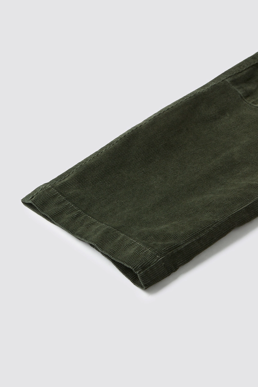 입체 패턴 설계로 실루엣을 개선한 코듀로이 소재의 팬츠로