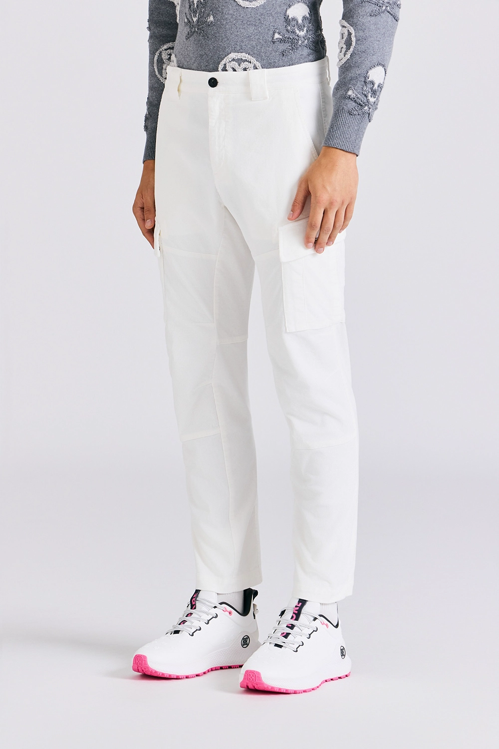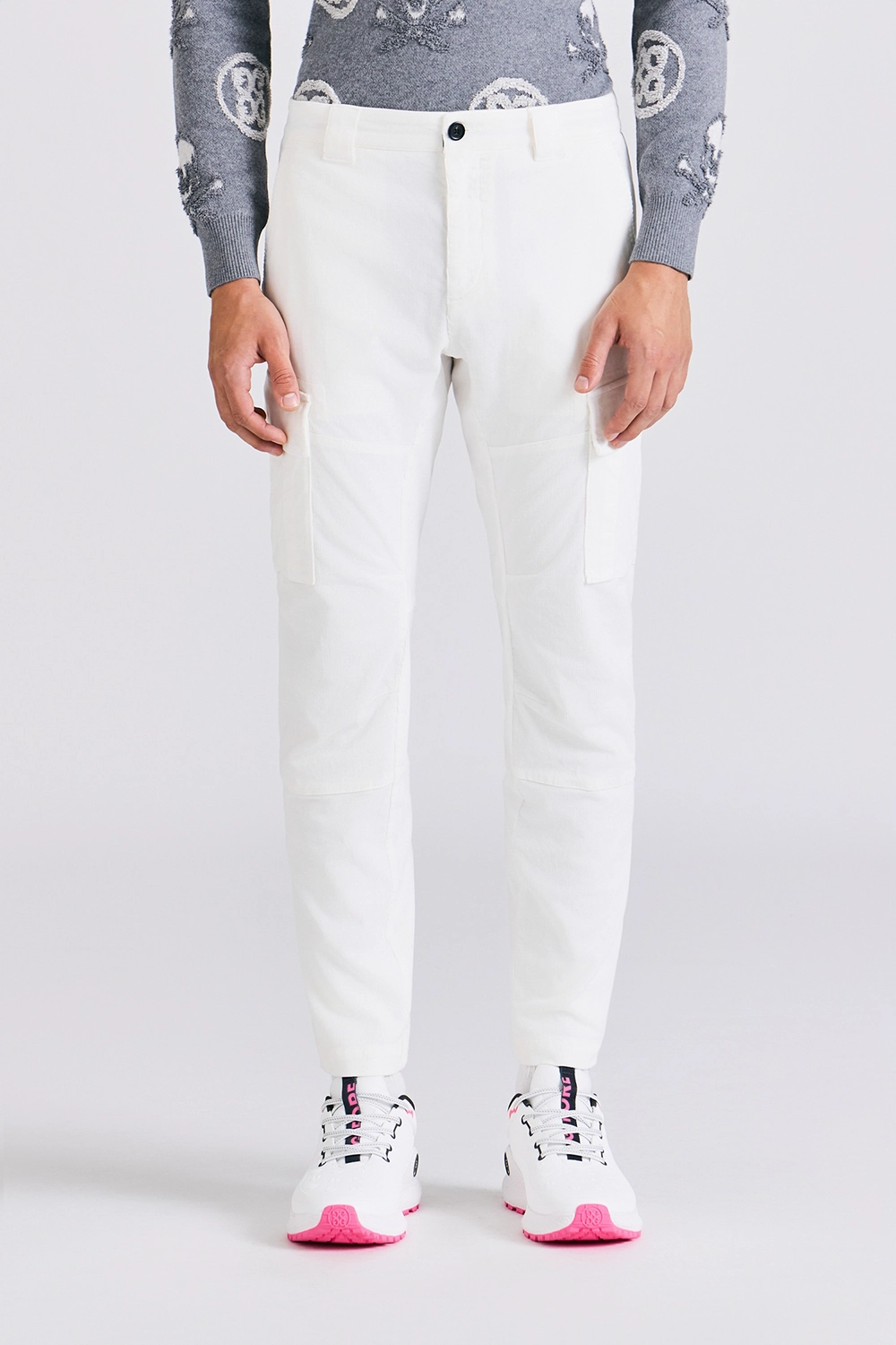 CORDUROY SLIM CARGO PANTS MEN-WHITE
