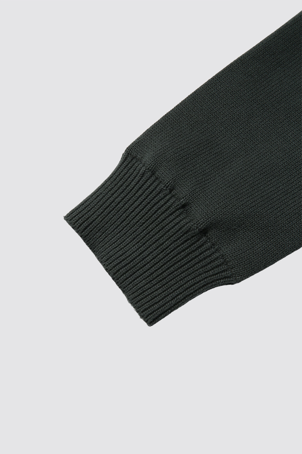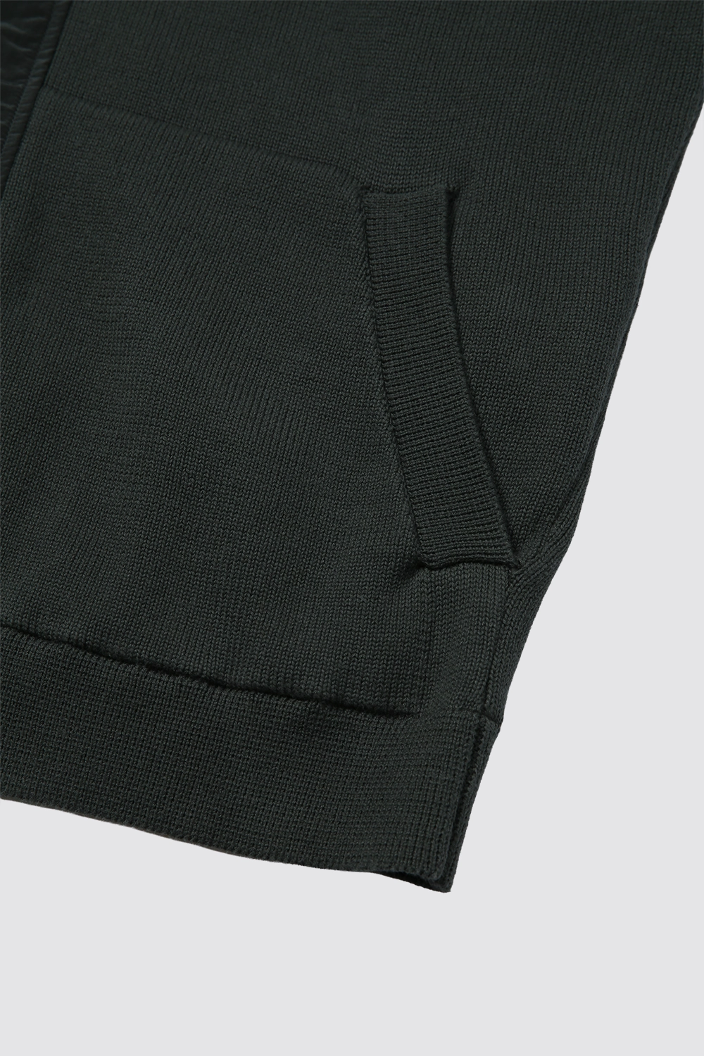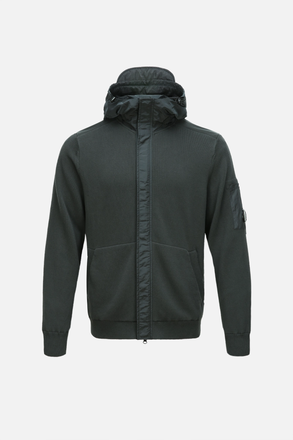 COTTON MIXED LENS ZIP KNIT HOODIE-DEEPGREEN