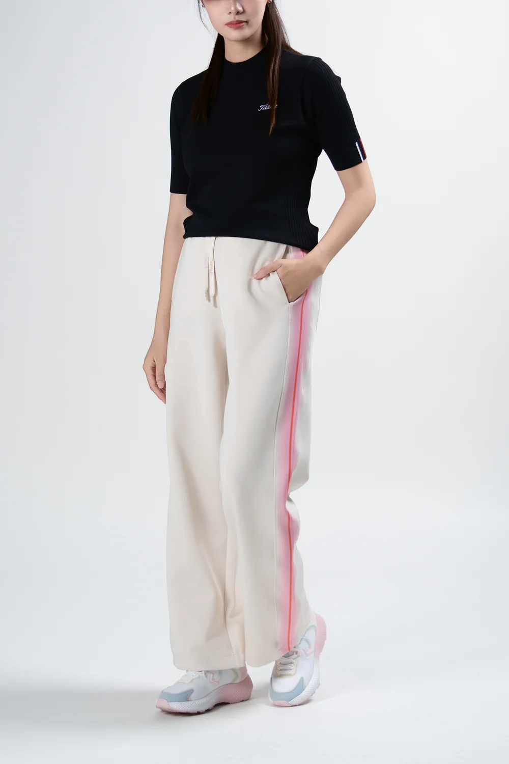STRIPED POCKET PANTS WOMEN-NAVY