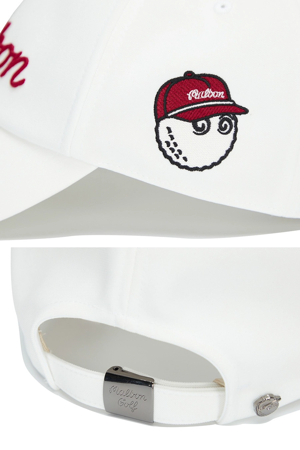 백 스트랩으로 사이즈 조절이 가능하며, 금속 캐릭터 장식으로 포인트를 주었습니다.