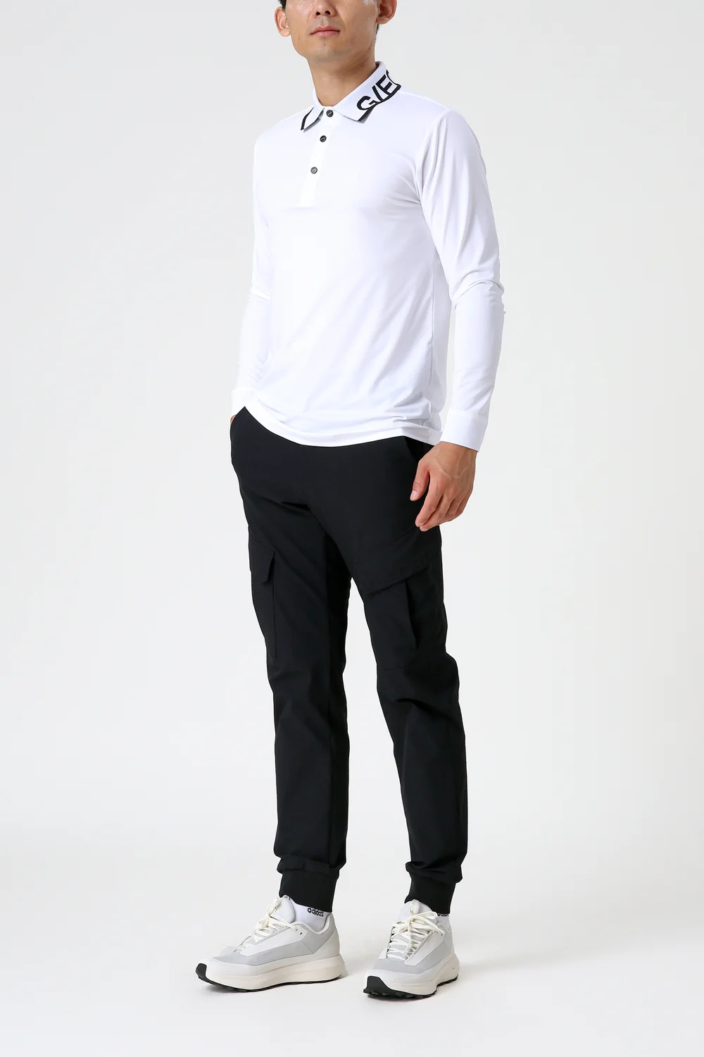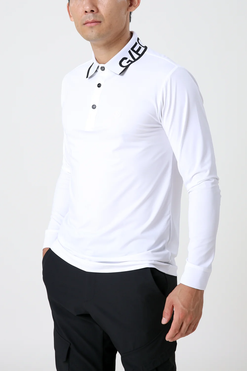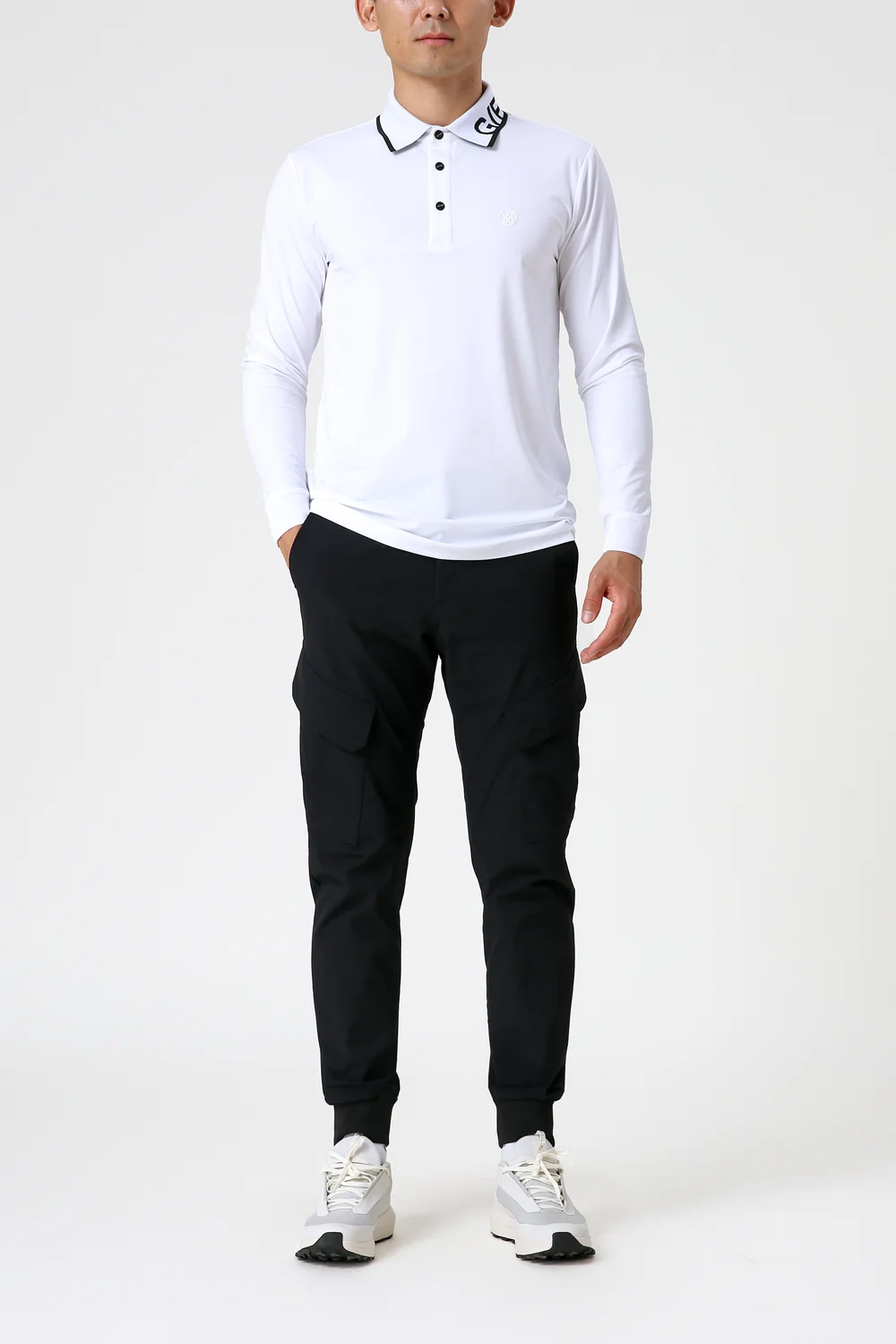 측면 로고 포인트 칼라 긴팔 폴로 티셔츠