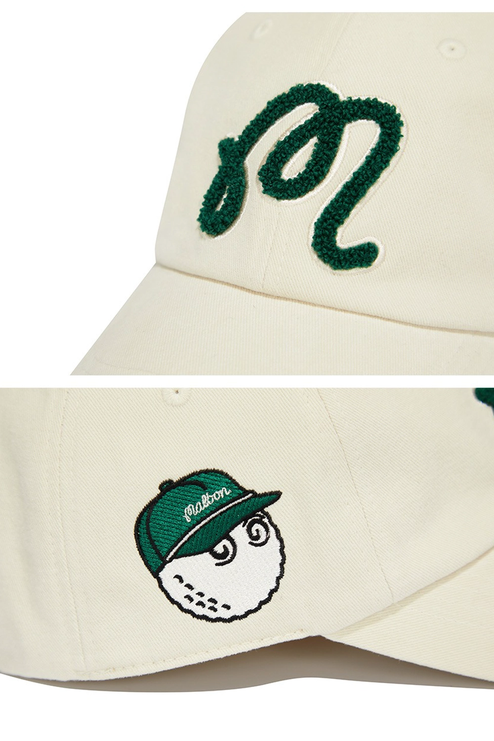 말본 대표 M로고를 입체적인 부클자수로 포인트 준 볼컵