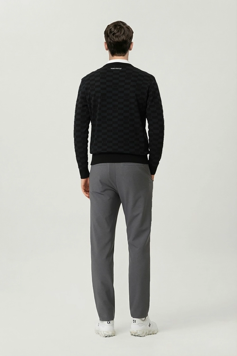 MEN JACQUARD ROUND NECK SWEATER-BLACK