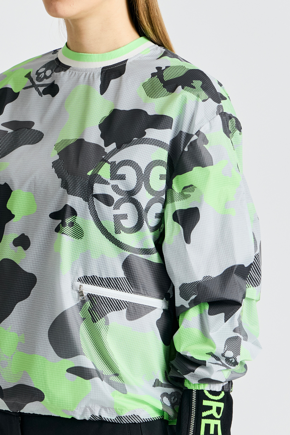 시즈널 까모 패턴의 라운드 우븐 풀오버