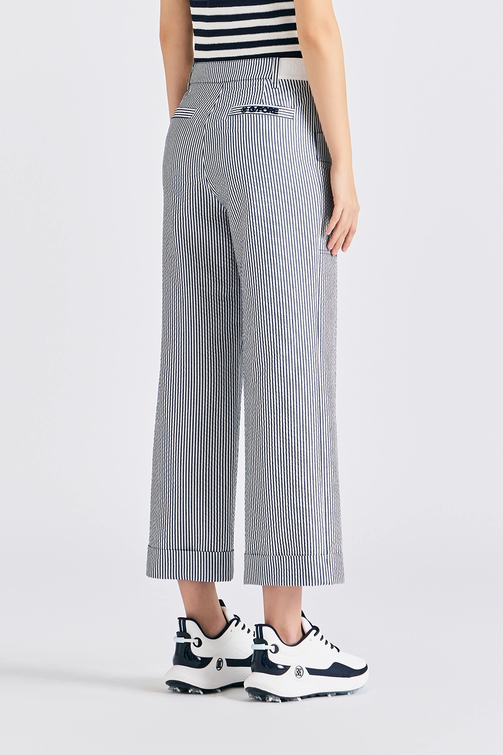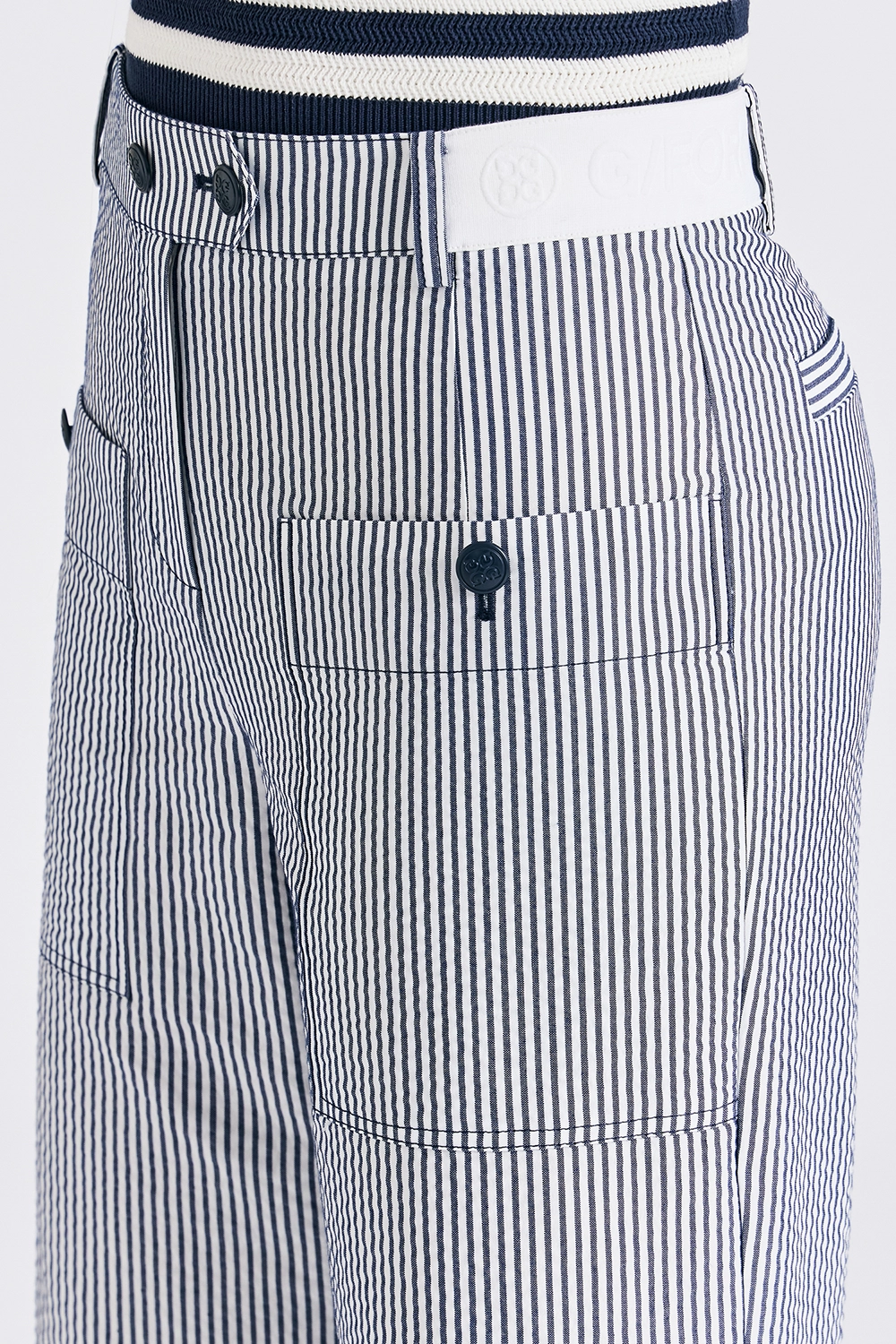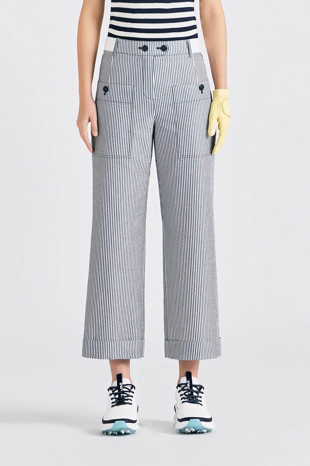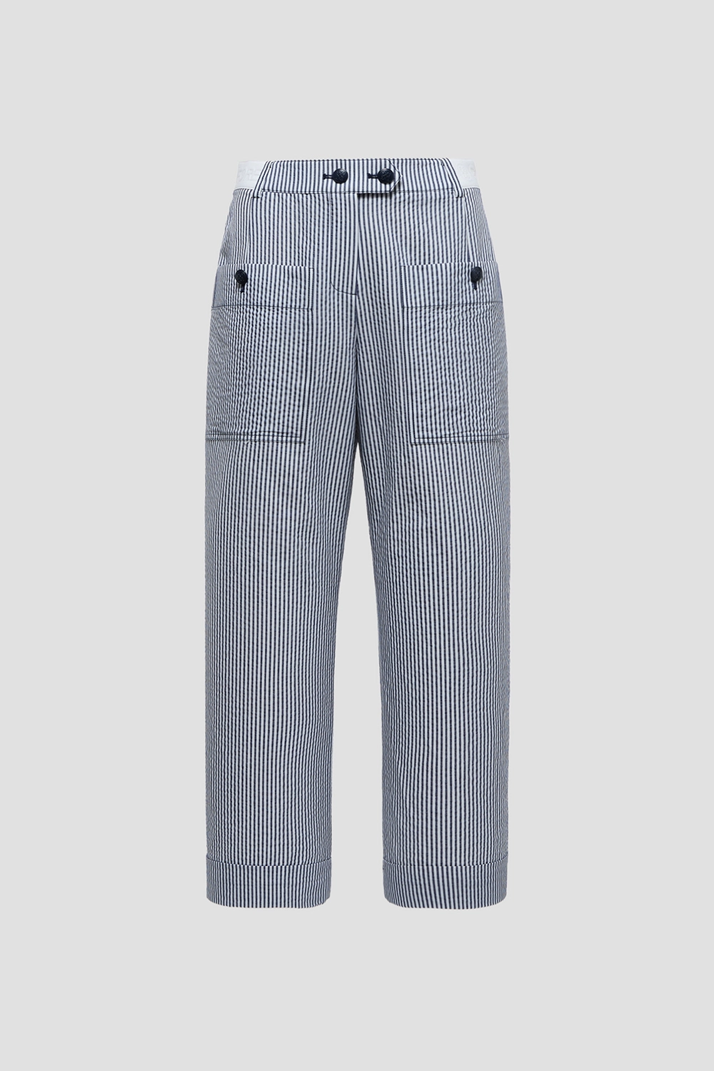 STRIPED POCKET PANTS WOMEN-NAVY