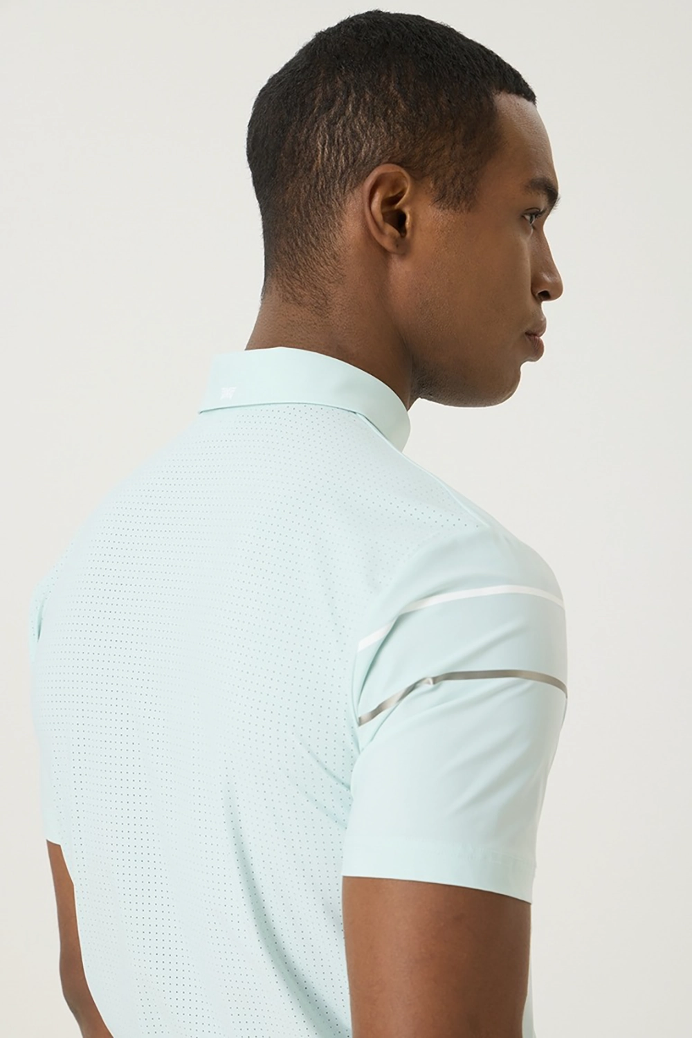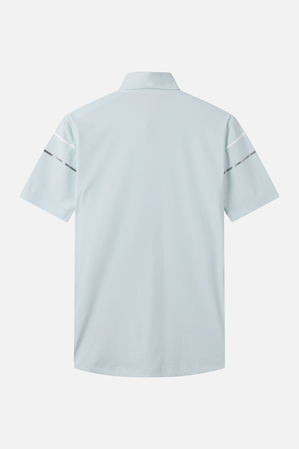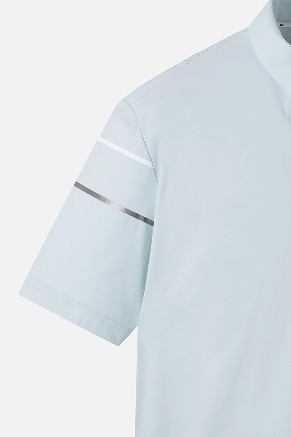소매 프린트 배색 포인트를 사용하여 엣지있는 코디 연출 등 전체에 펀칭 원단을 사용해 벤틸레이션 기능성을 강화하여 한여름 라운딩에 최적화 된 아이템