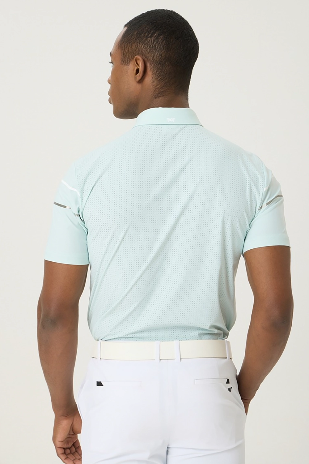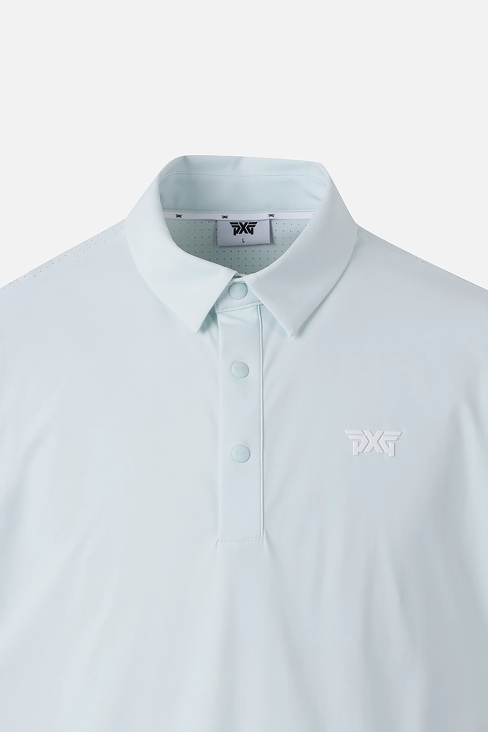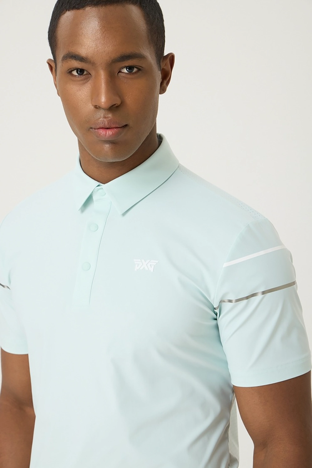 소매 프린트 배색 포인트를 사용하여 엣지있는 코디 연출 등 전체에 펀칭 원단을 사용해 벤틸레이션 기능성을 강화하여 한여름 라운딩에 최적화 된 아이템