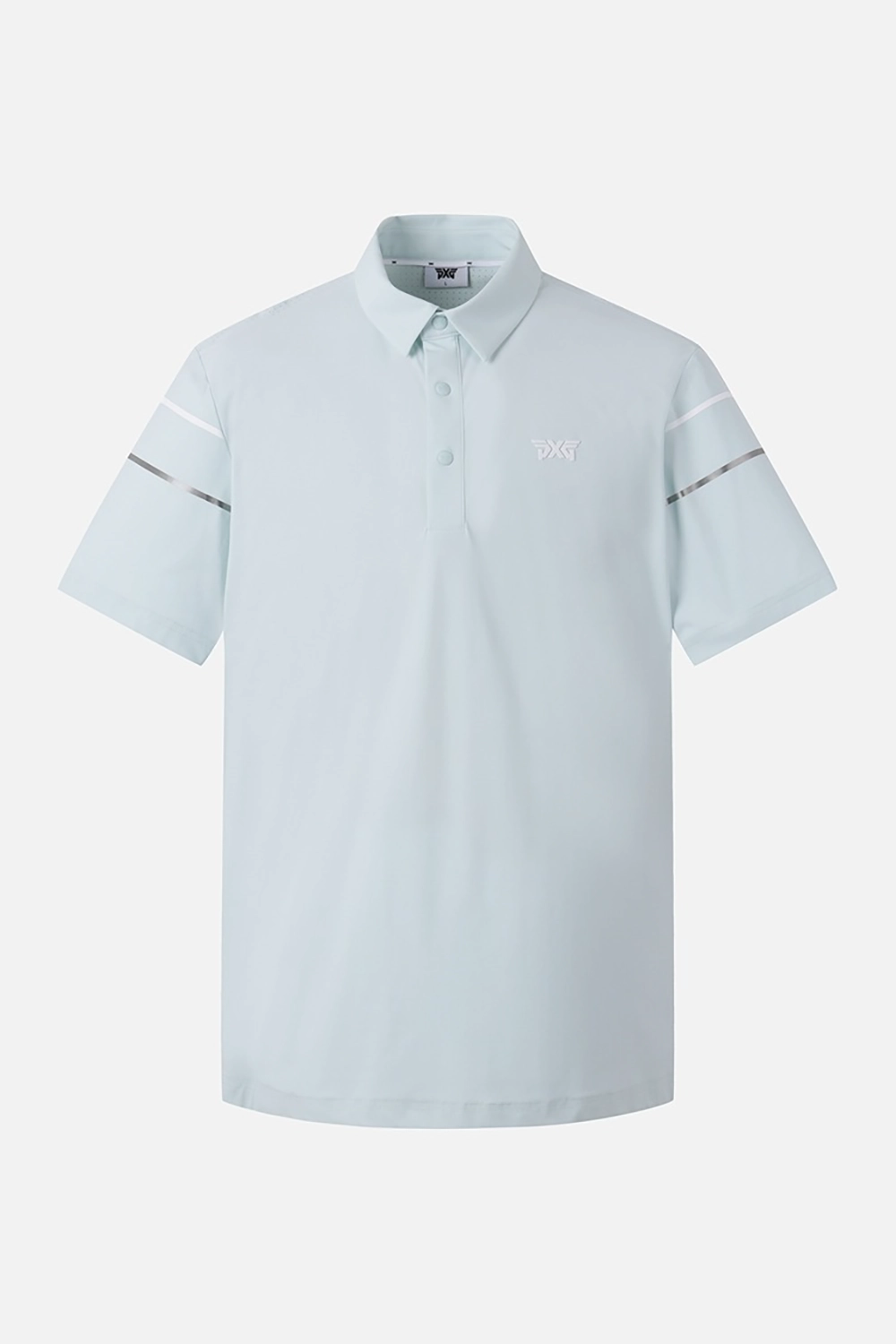 SUMMER COLOR LINE POINT PERFORATED COLLAR SHORT-SLEEVE-GREEN