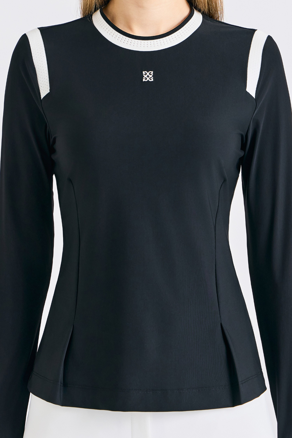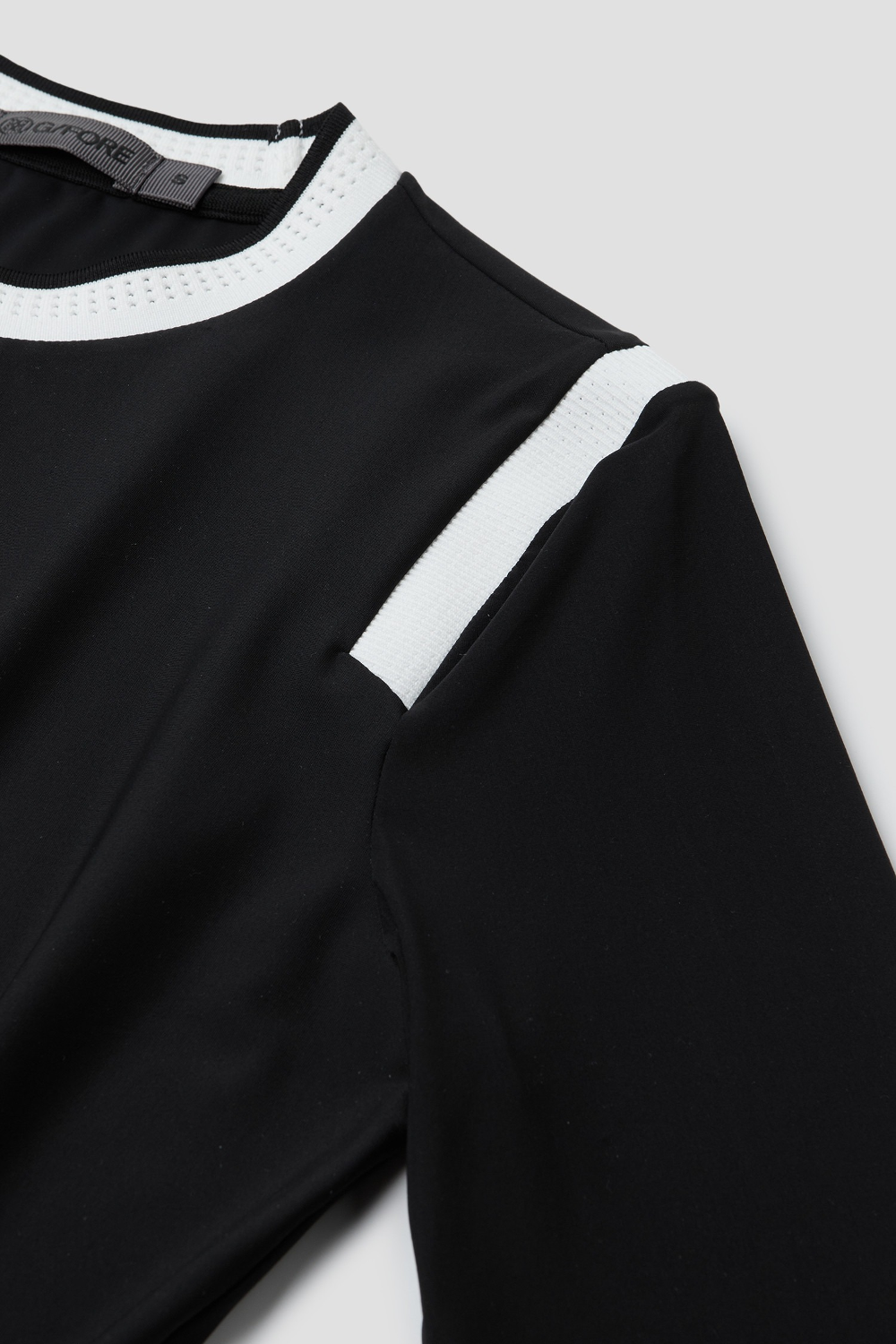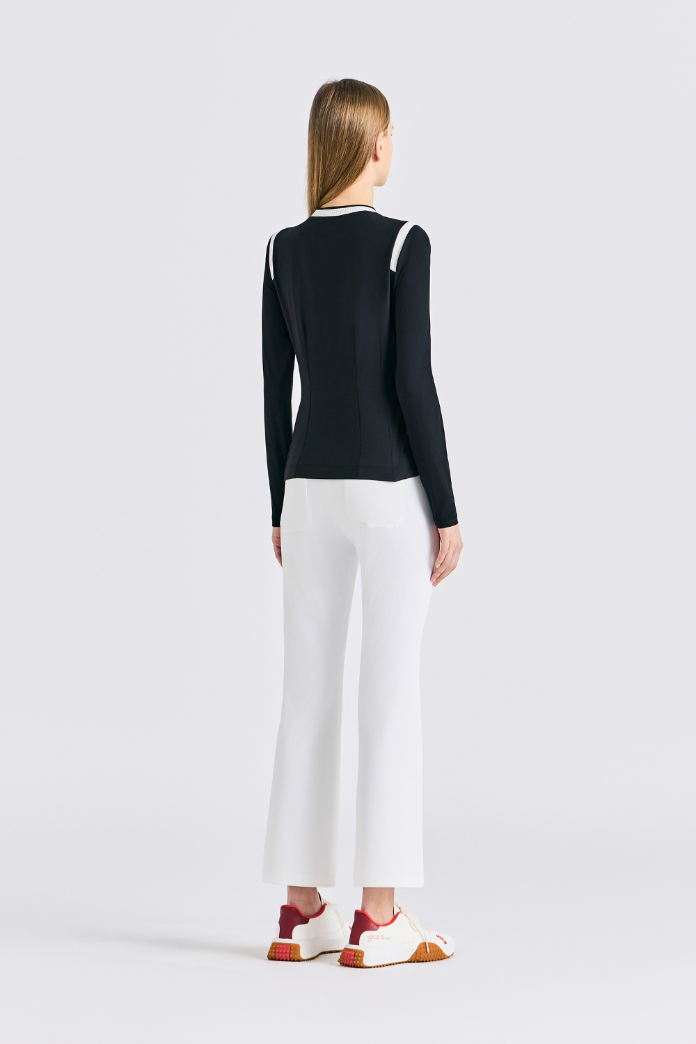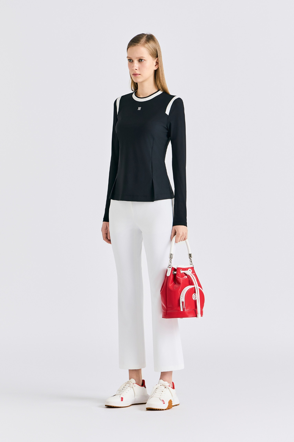 배색의 라인이 실루엣을 돋보이는 스타일