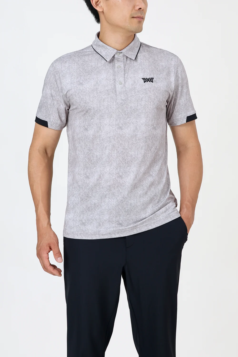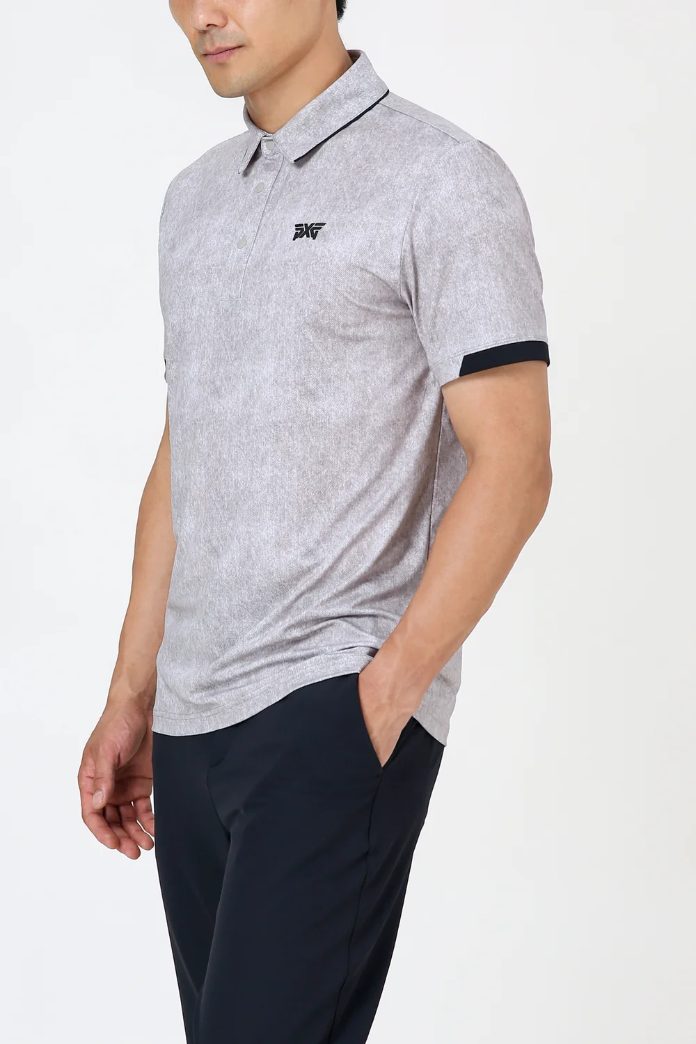 여름 투톤 프린트 기본 에리 반팔 티셔츠
