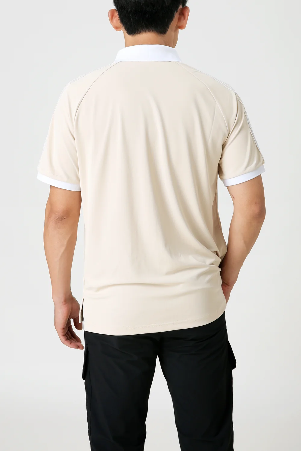 숄더 테이프 디테일이 가미된 솔리드 컬러의 칼라 티셔츠