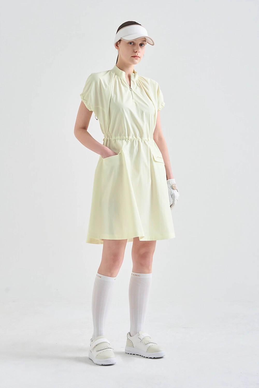 ONEPIECEUV CUT DRAWSTRING MOCK NECK DRESS-YELLOWONEPIECEUV CUT DRAWSTRING MOCK NECK DRESS-YELLOW물세탁이 가능하며, 자외선 차단과 흡습속건, 접촉 냉감, 구김 방지 기능을 갖춘 소재를 사용하여 가볍고 쾌적한 착용감을 전해주는 드레스입니다. 넥라인을 살짝 감싸주는 모크넥 디자인이 돋보이며, 소맷단과 허리 라인에 드로우스트링으로 실루엣 조절이 용이합니다. 앞면에 플랩 포켓 한쪽에 로고 자수 디테일을 더해 포인트 주었으며, 이너 팬츠를 함께 구성해 활동성을 높였습니다 SKU: LB2F3WOP641W_LM 카테고리: ONEPIECE 태그: UV차단, 냉감성, 흡수성 브랜드: LANVIN BLANC상품관리번호: lb097₩135,000무료 배송제품입니다. 다른 색상 보기 블랙COLOR 옵션을 선택하세요옐로우옐로우SIZE 옵션을 선택하세요SMLSML클리어 UV CUT DRAWSTRING MOCK NECK DRESS-YELLOW 수량 ₩135,000 장바구니 지금 구입하기 사이즈표 보기 ×사이즈 가이드사이즈엉덩이너비가슴너비허리너비밑단너비소매길이총기장속바지-허리너비속바지-엉덩이너비속바지-총장S6752519625.593.5284028M6954539826.595304229L71565510027.596.5324430※ 위 사이즈는 재는 위치나 방법에 따라 오차가 있을 수 있습니다.단위: cm 💬문의하기다른 사용자들을 위해 당신의 경험을 공유해주세요!리뷰 작성하기전체 리뷰 (0)표시할 리뷰가 없습니다.׋›