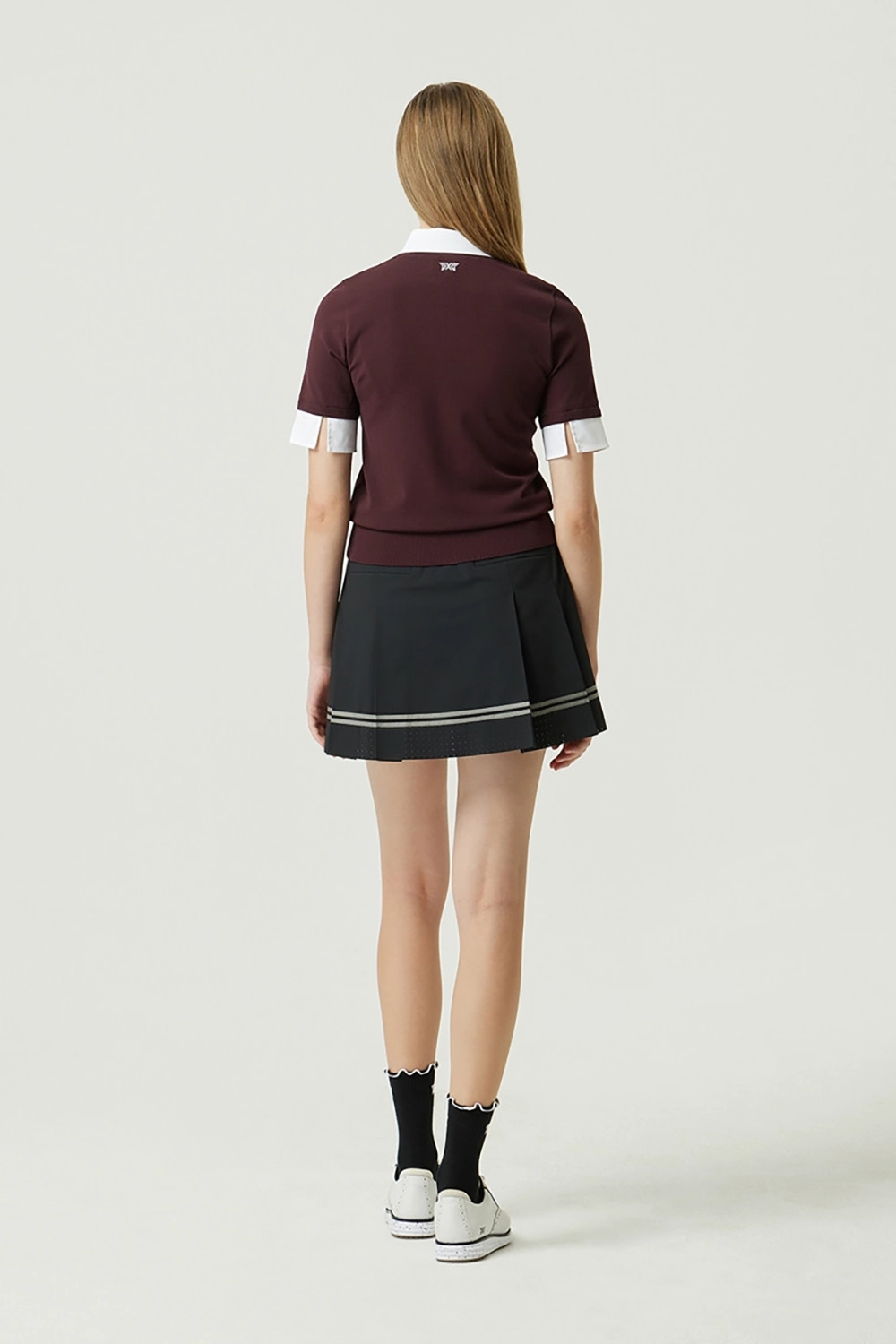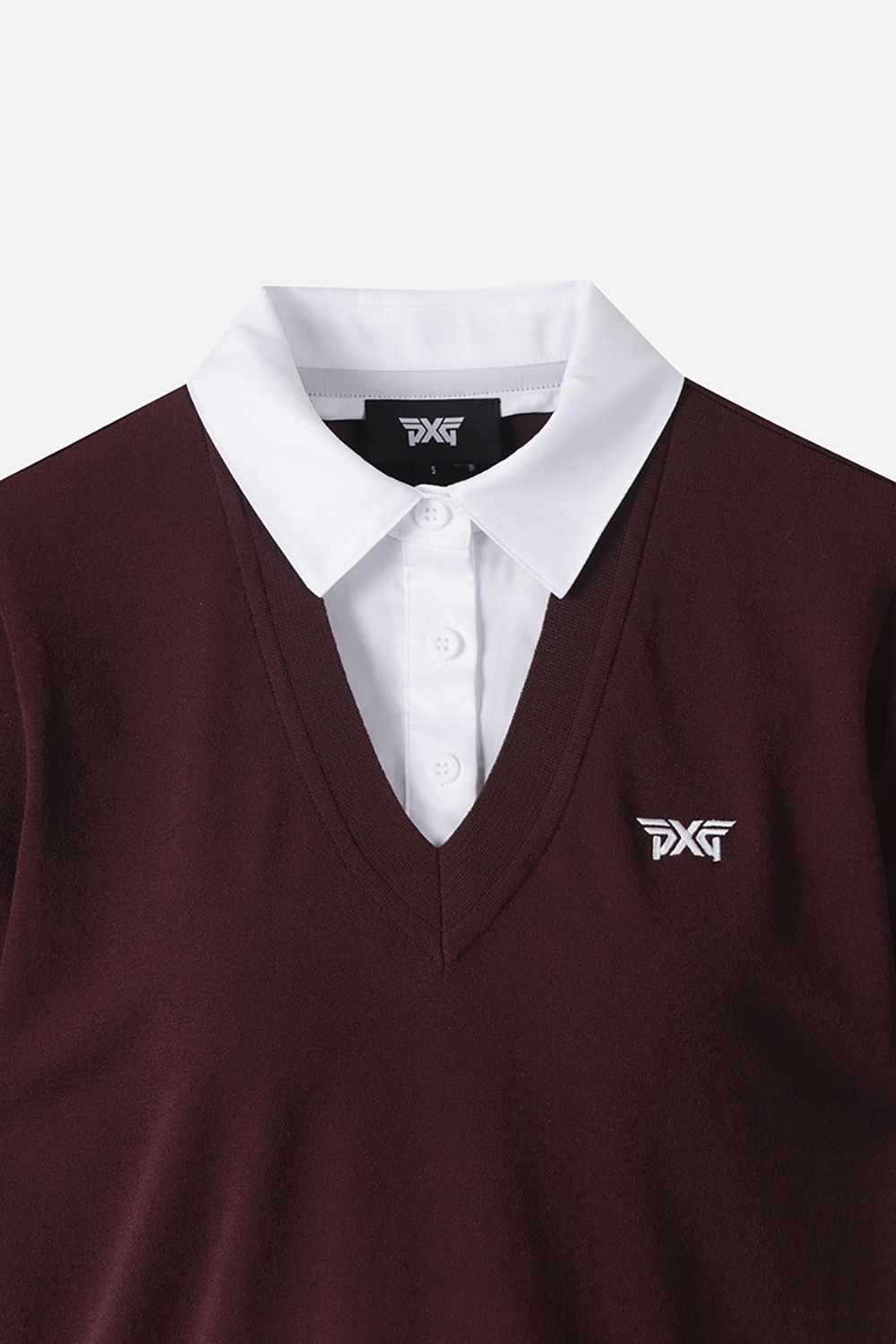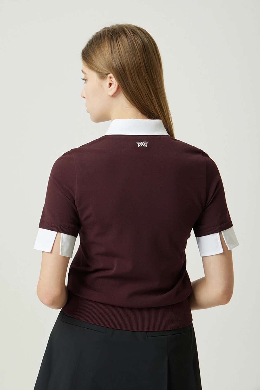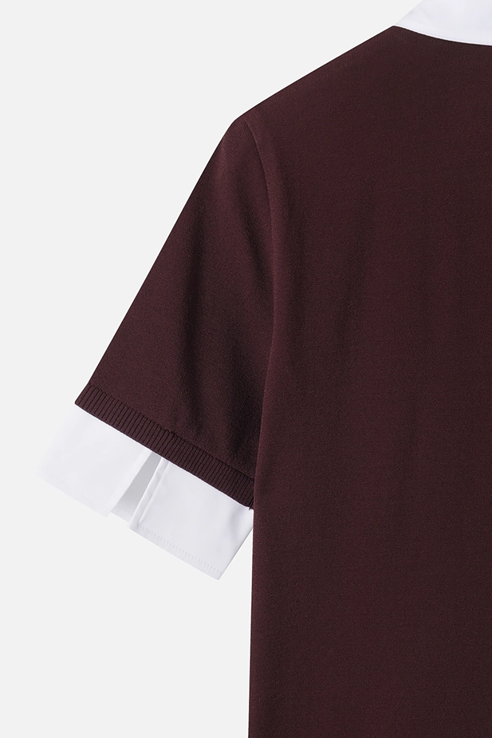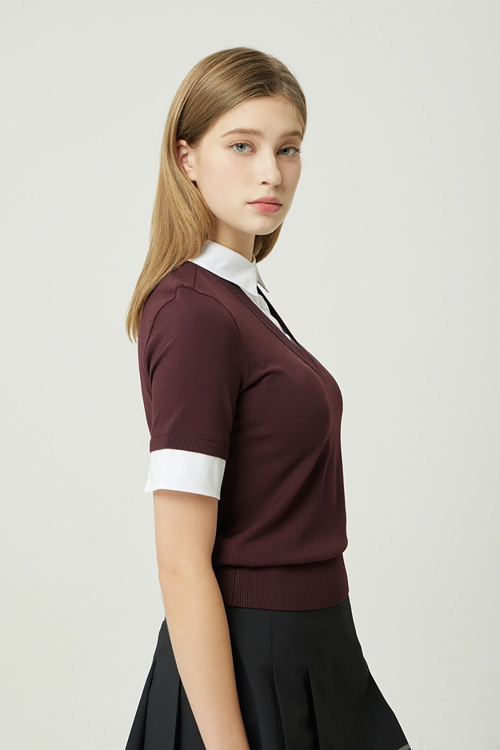 판매성이 좋은 페이크 레이어드 형태의 숏 슬리브 카라 니트