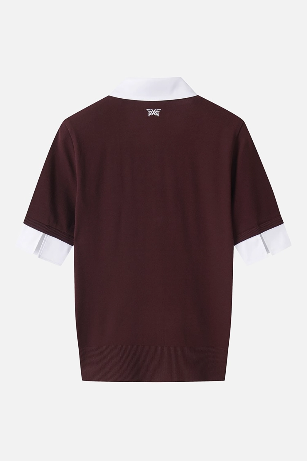WOMEN COLLARED SHORT SLEEVE KNIT-WINE