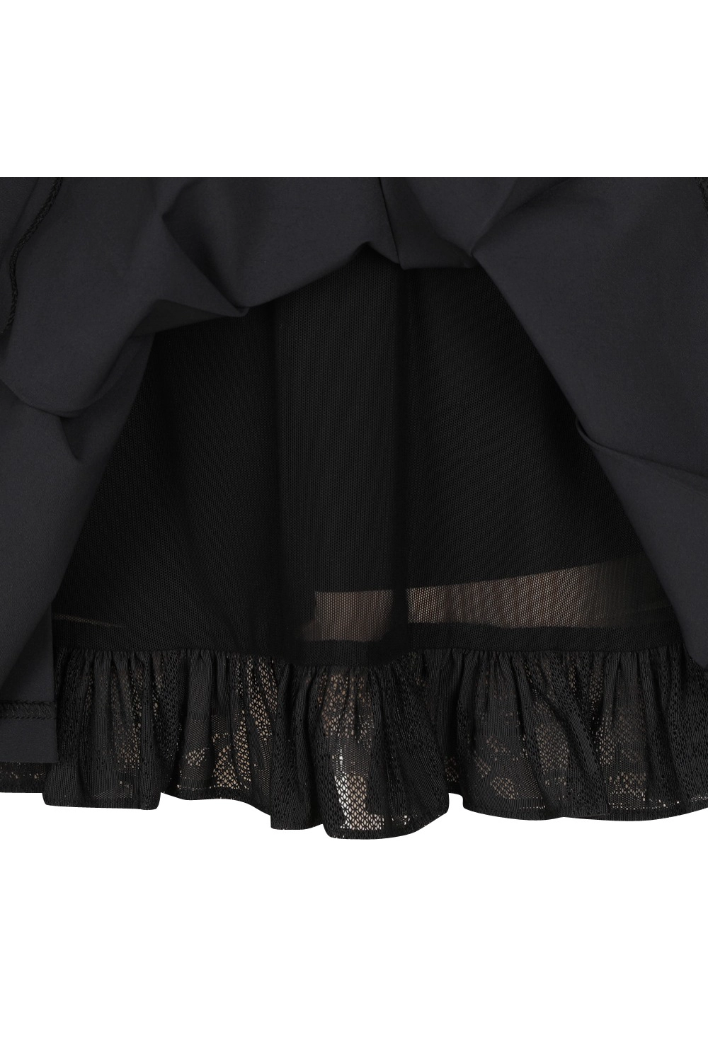 플리츠 속 레이스 메쉬 소재로 페미닌 무드의 디자인