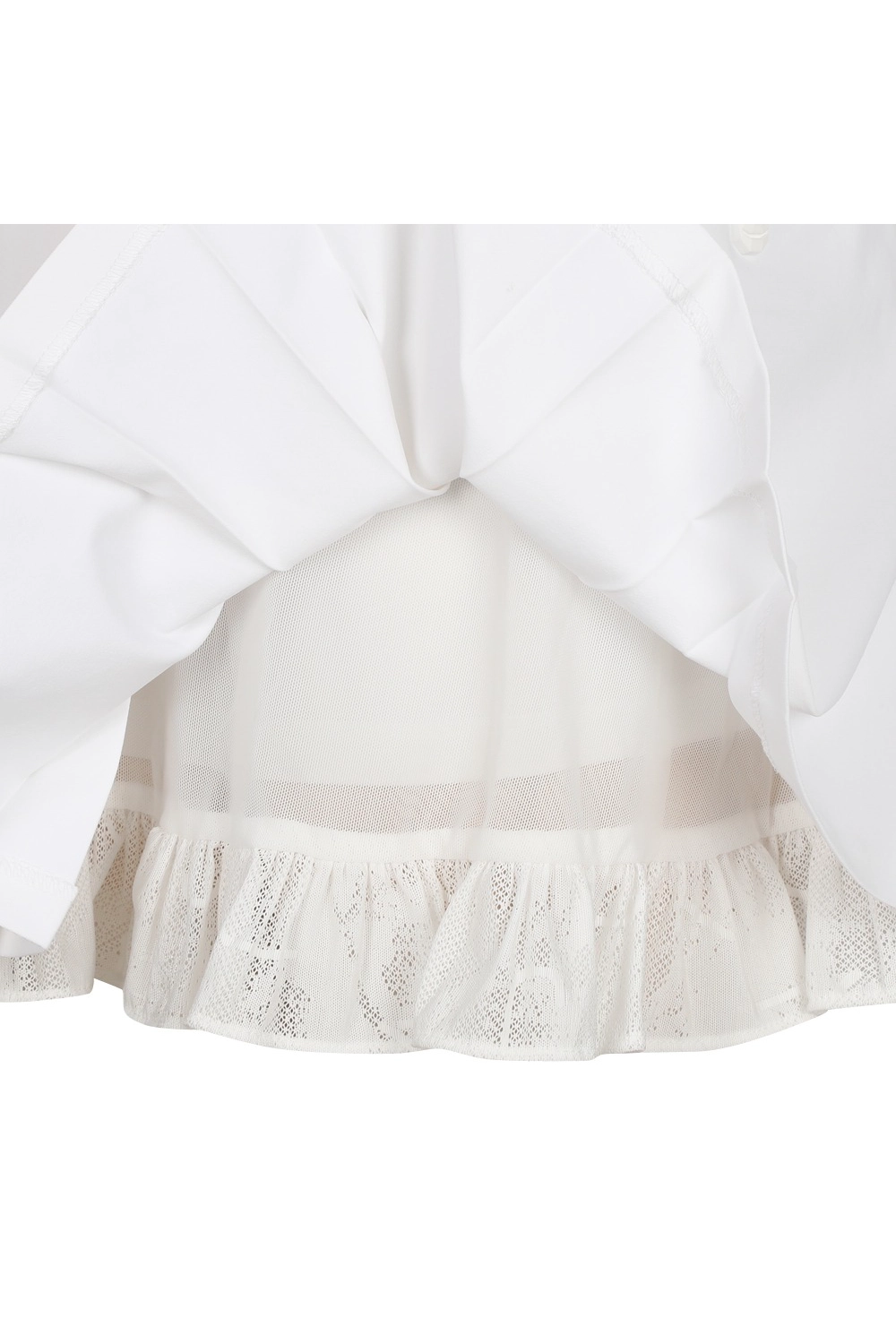 플리츠 속 레이스 메쉬 소재로 페미닌 무드의 디자인