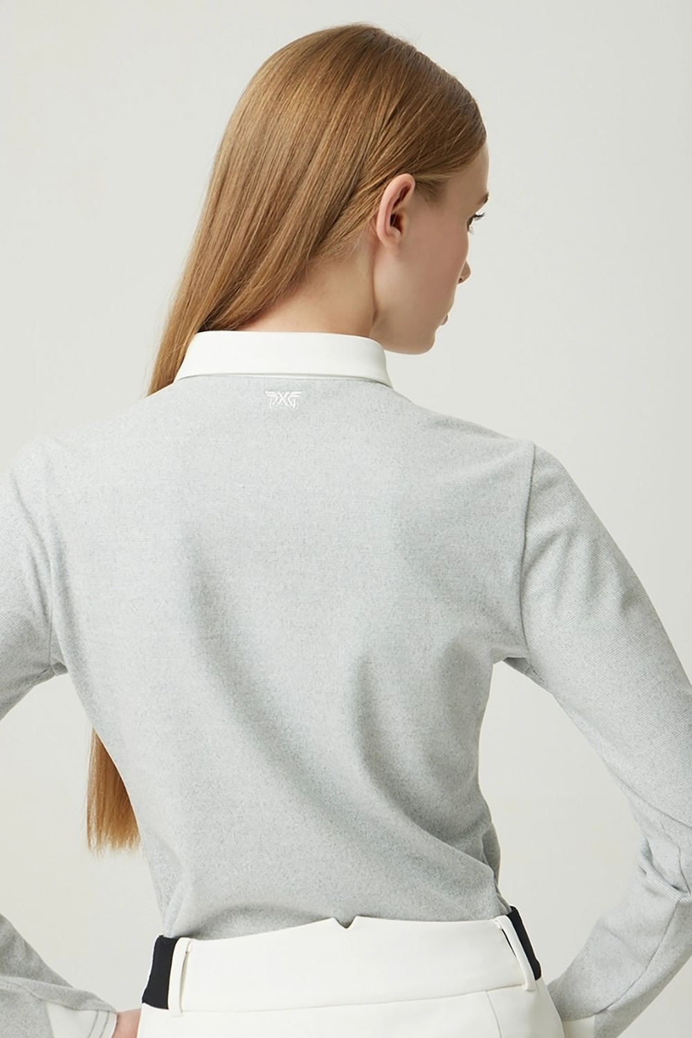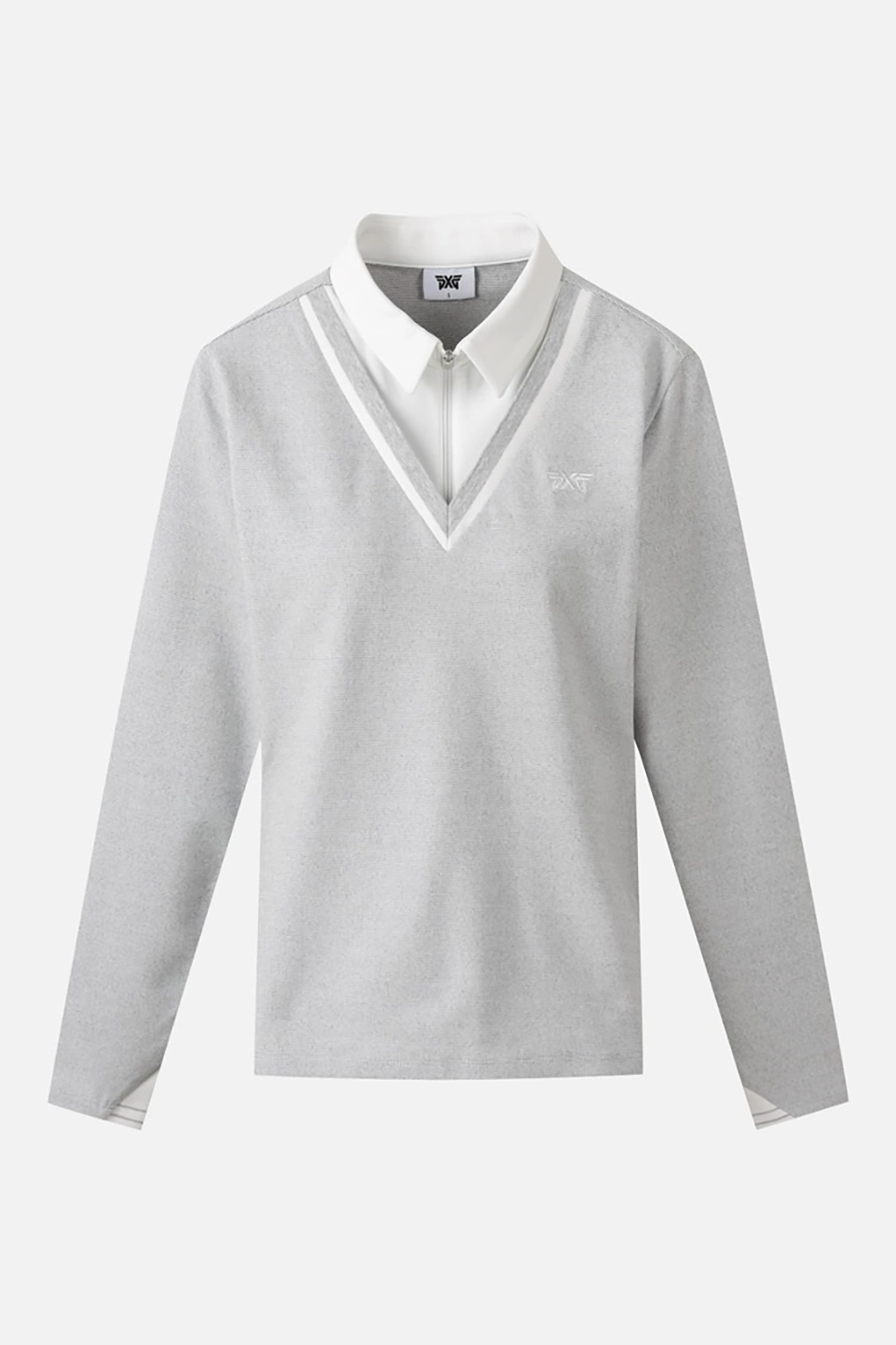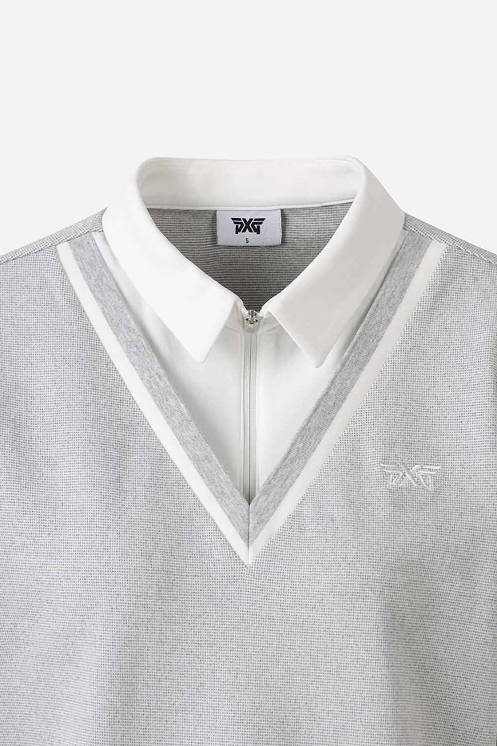 페이크 레이어드 형태의 반집업 카라 티셔츠