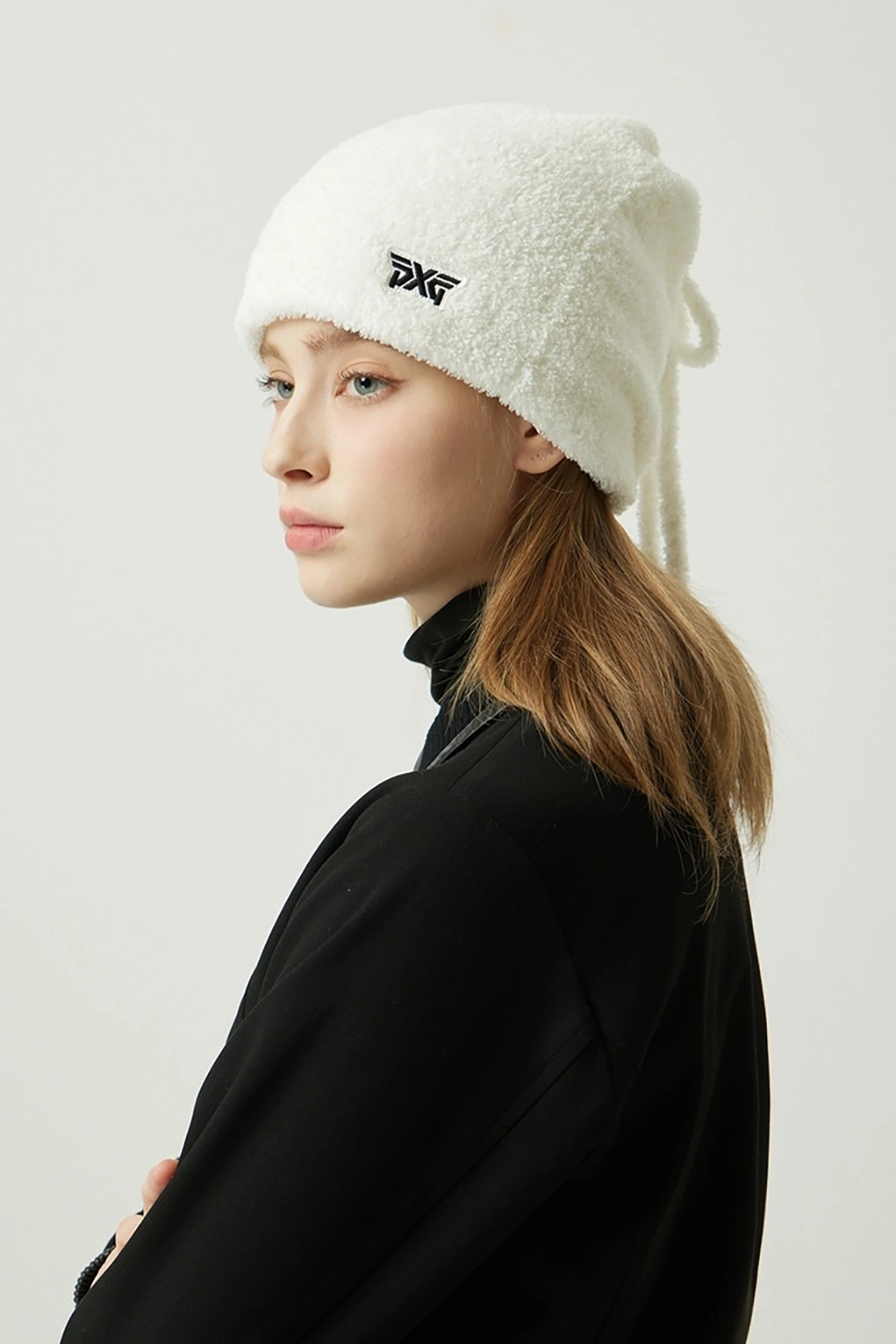 상단의 끈 조절로 비니, 넥워머 등 두가지 아이템으로 연출 가능한 아이템