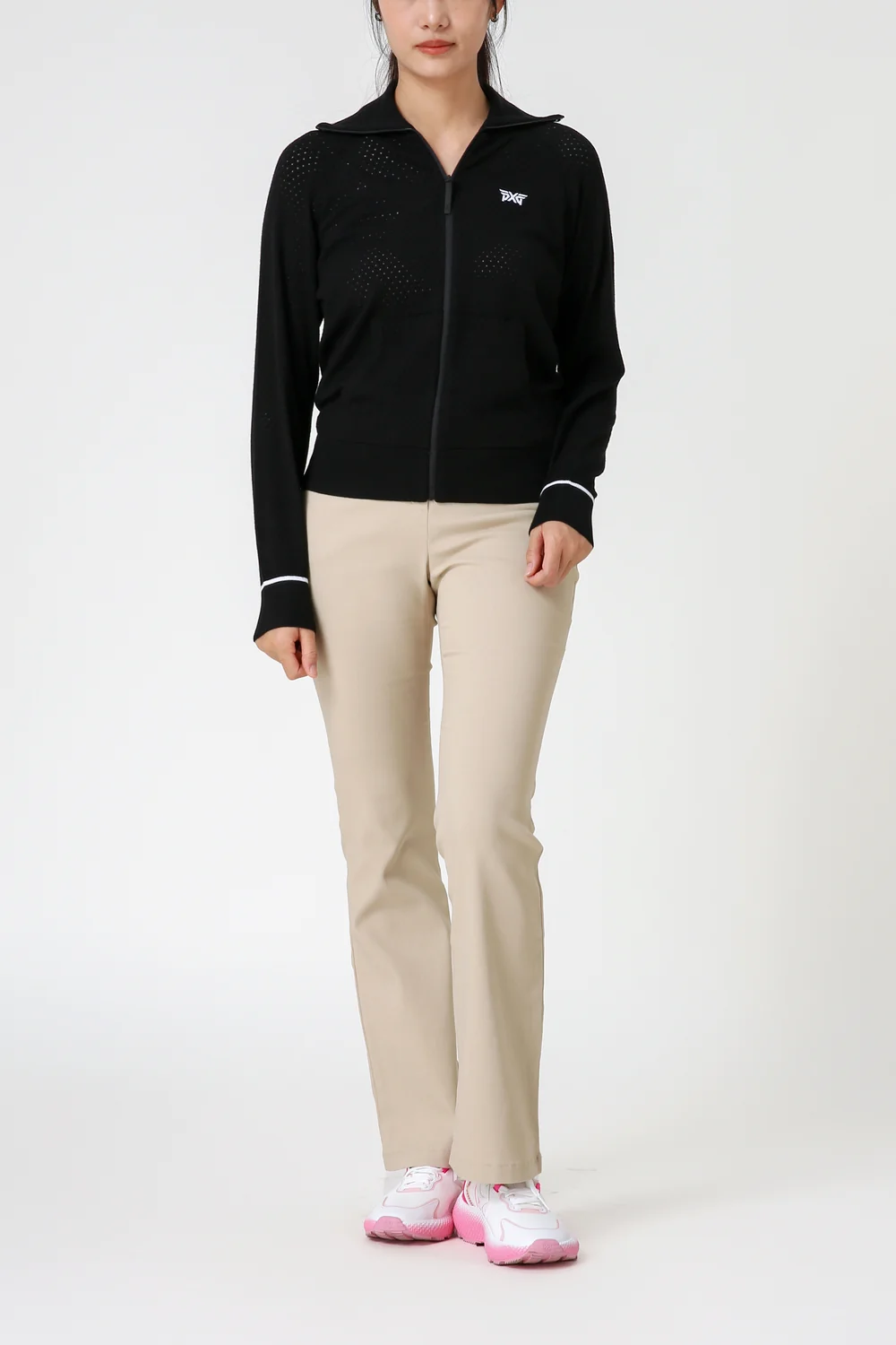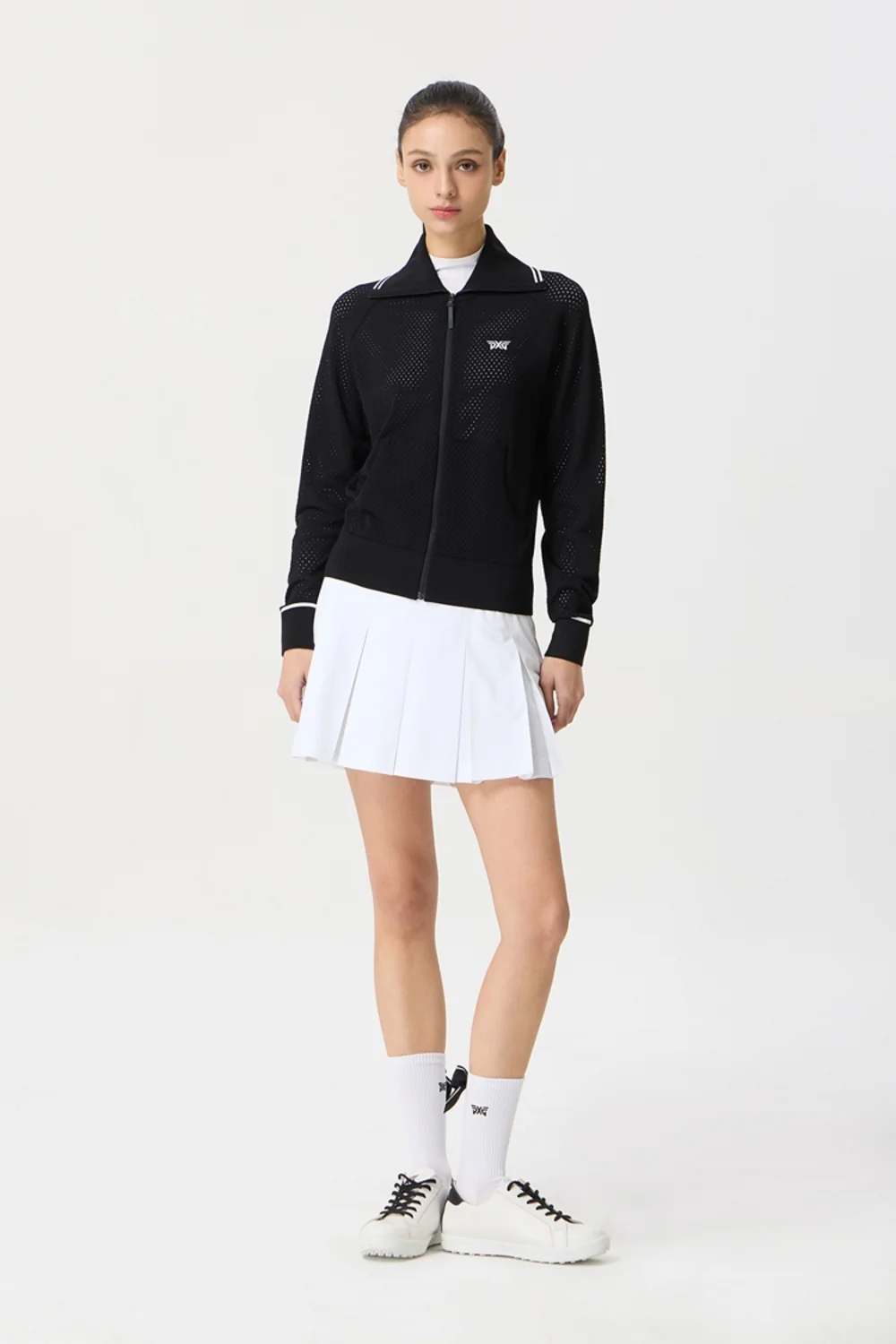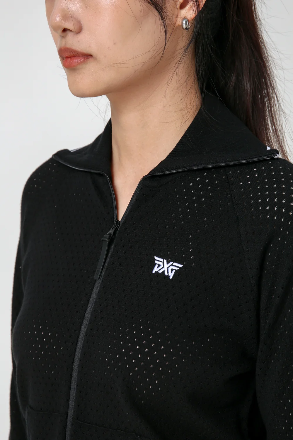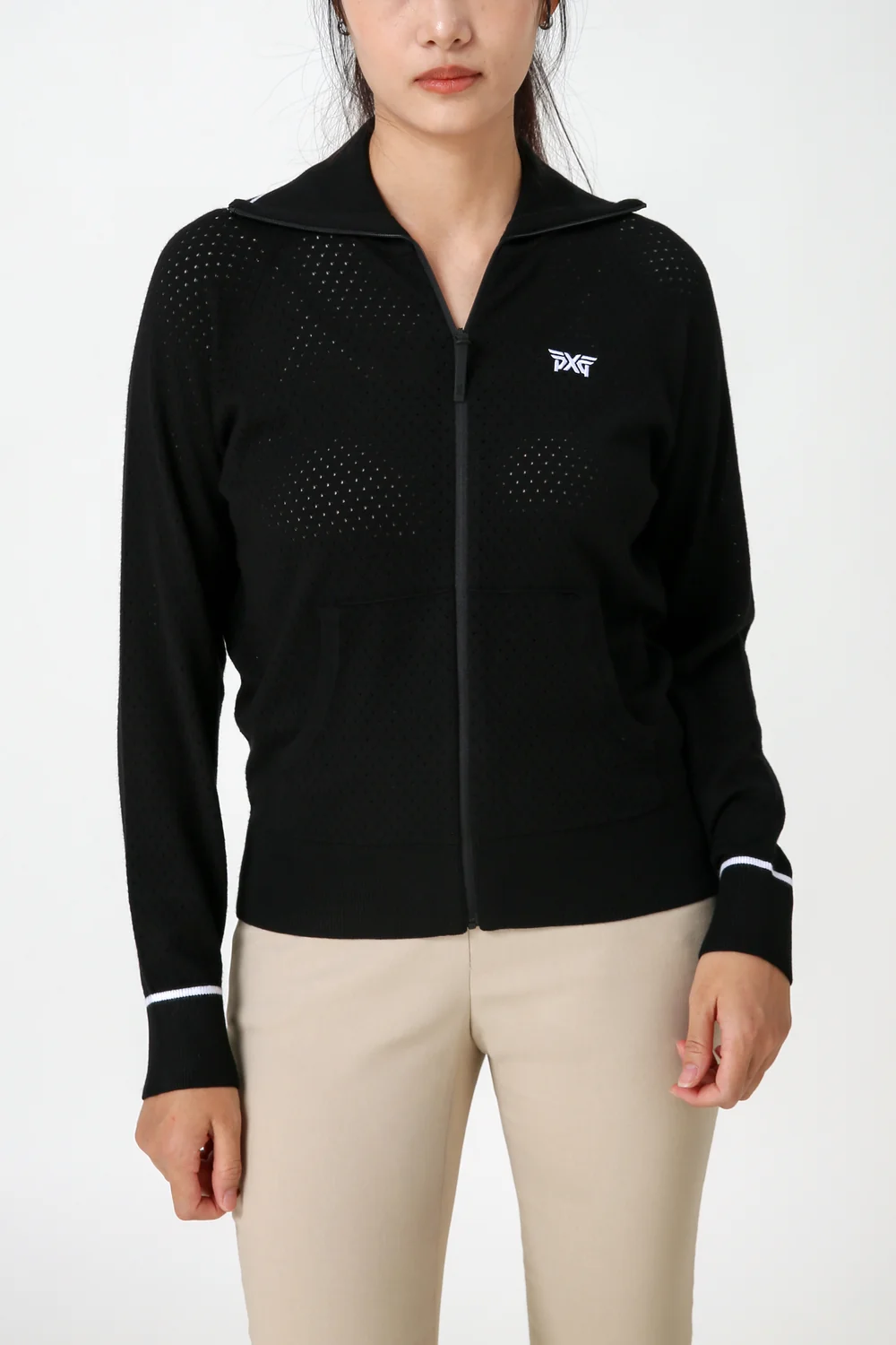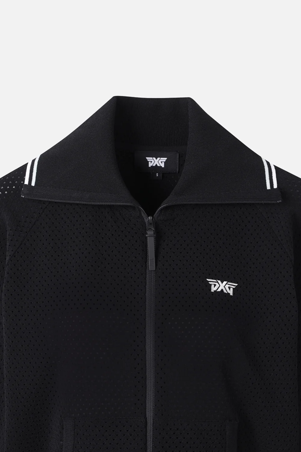집업 에리단에 라인 배색 적용하여 고급스러움 연출