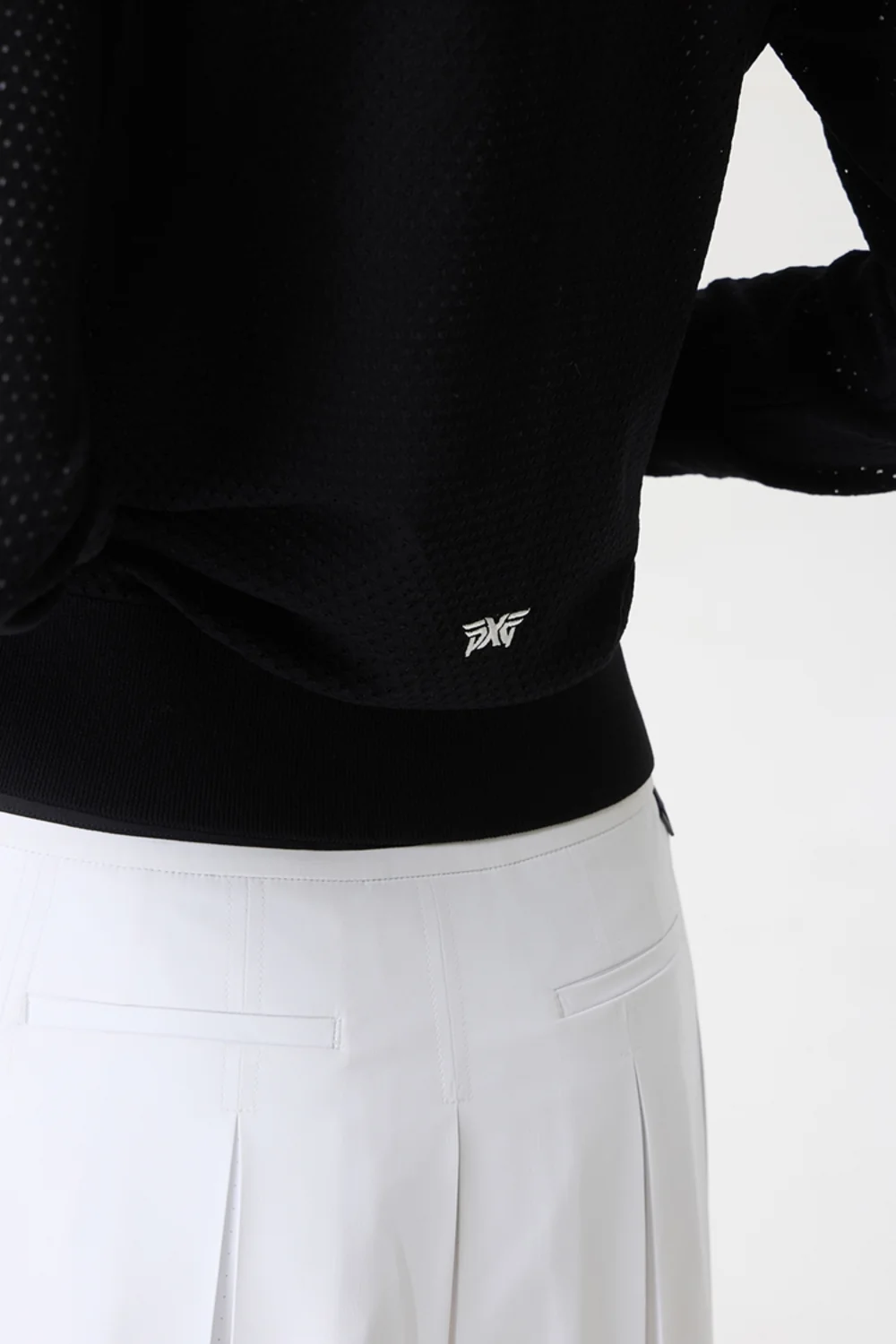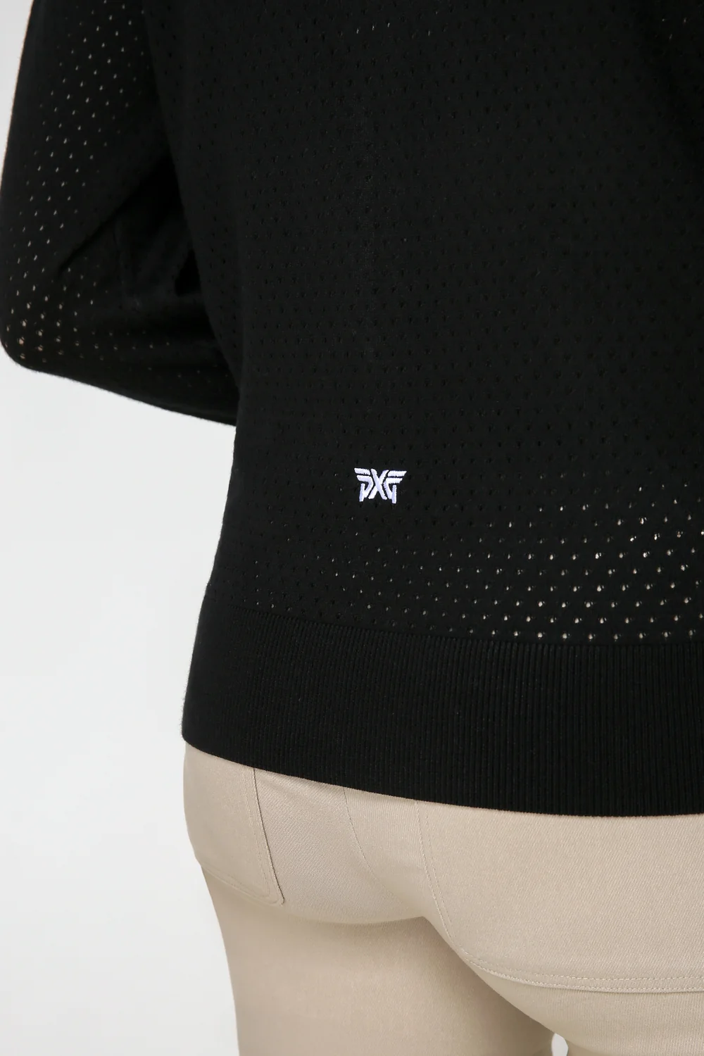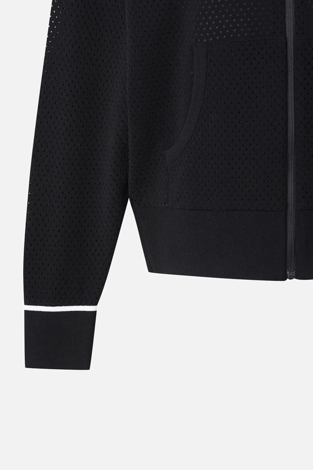 전체 몸판 스카시 조직으로 짜여진 여름철 니트