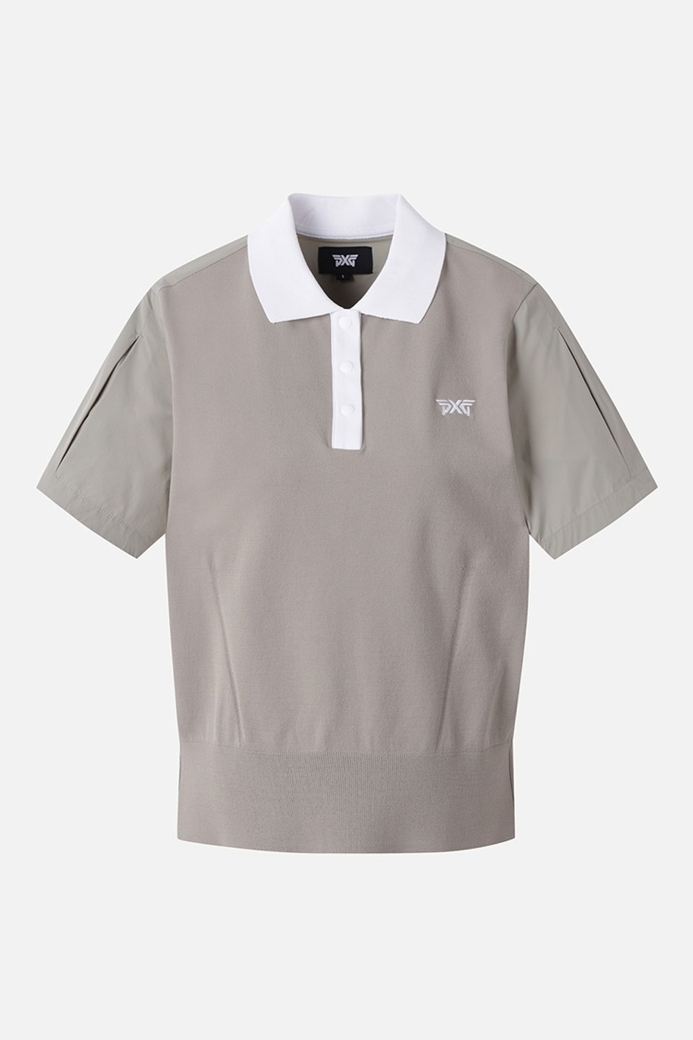 소매와 등판에 우븐소재를 사용한 하이브리드 니트