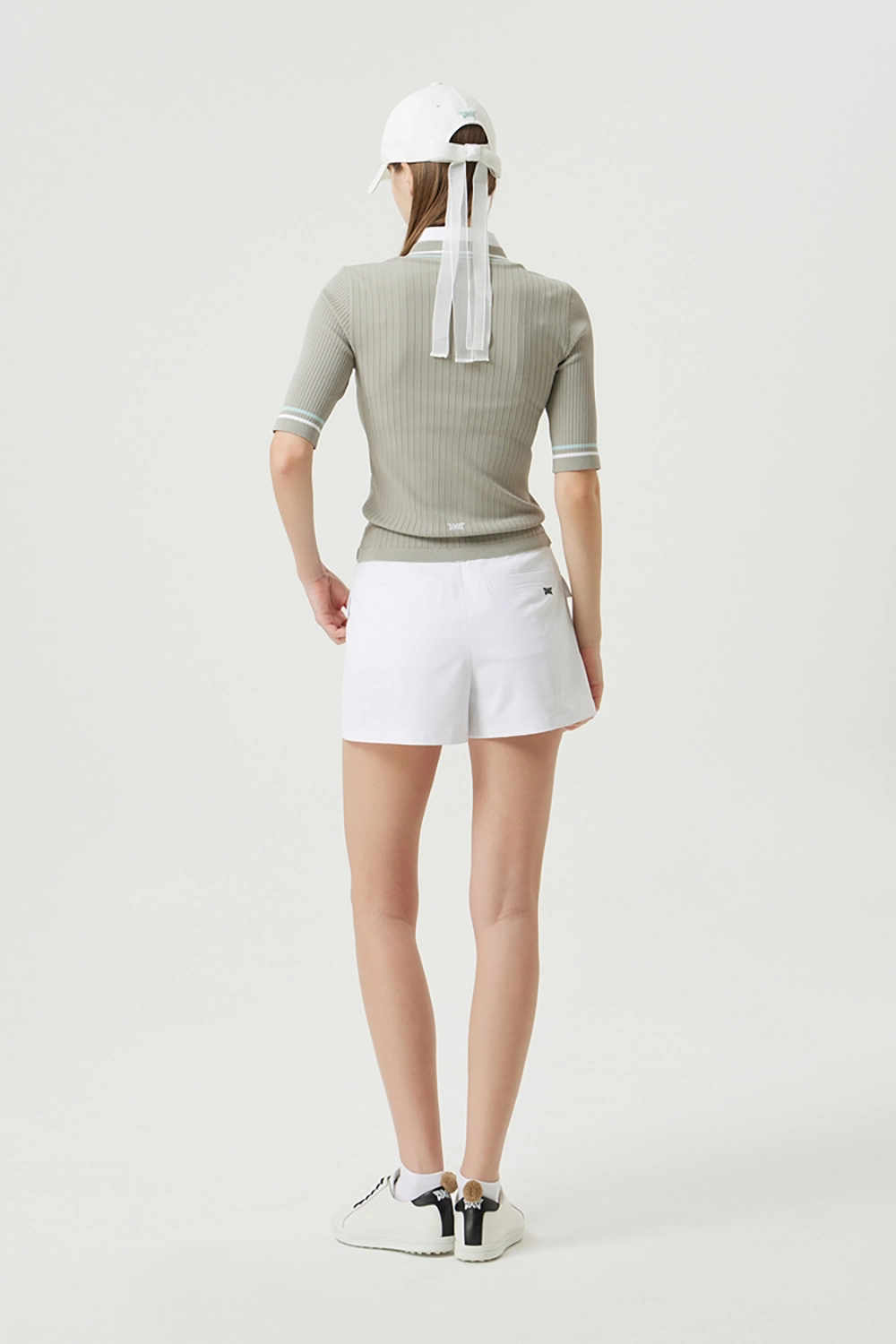 몸판에 골조직을 사용하여 슬림하게 연출 가능한 반팔 니트