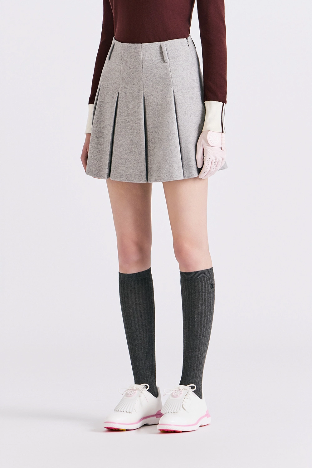 수입 소재로 제작된 플리츠 스커트.