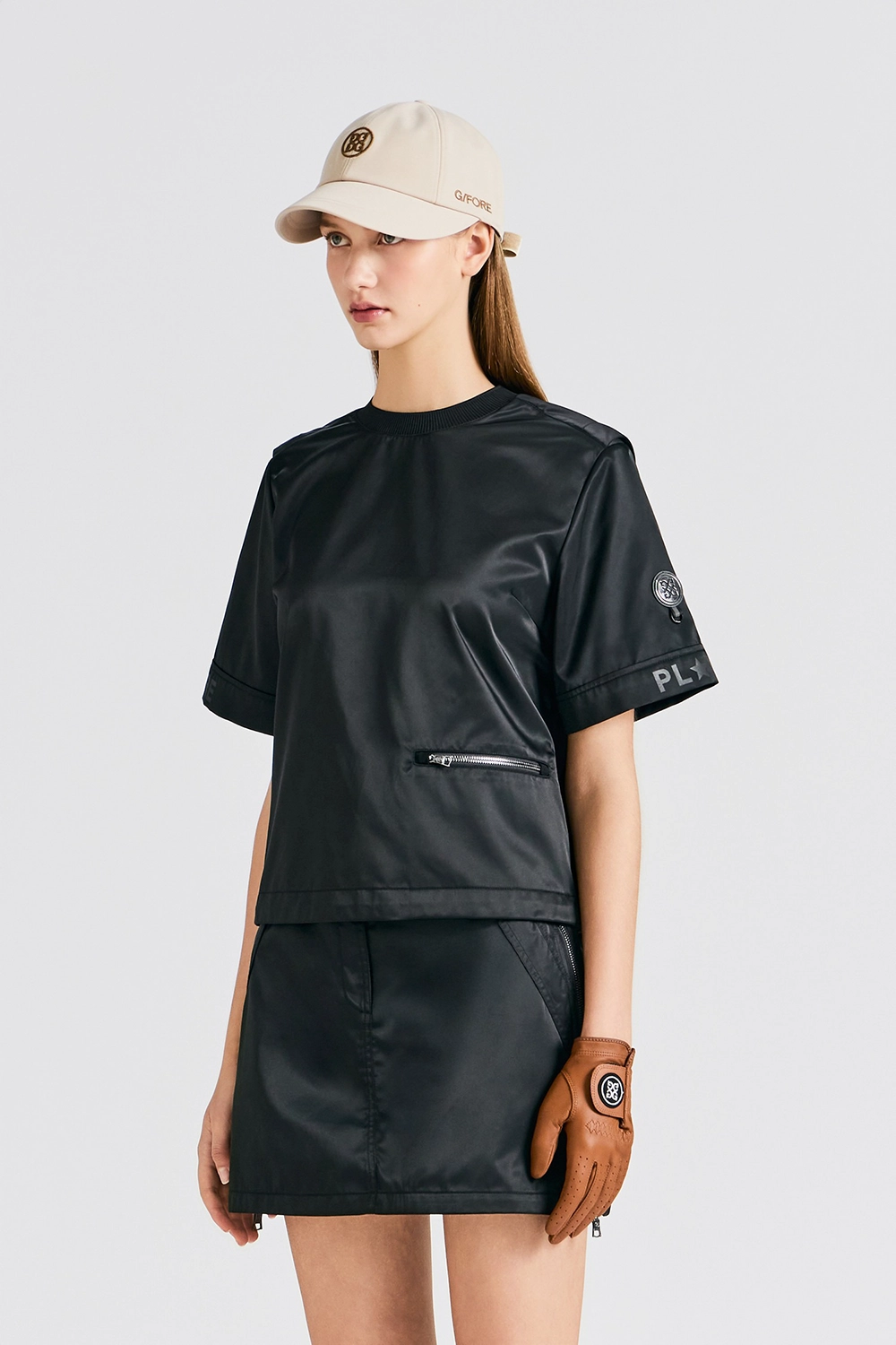 소매 위 Circle G’s 로고와 소매 끝 FORE, PLAY 슬로건으로