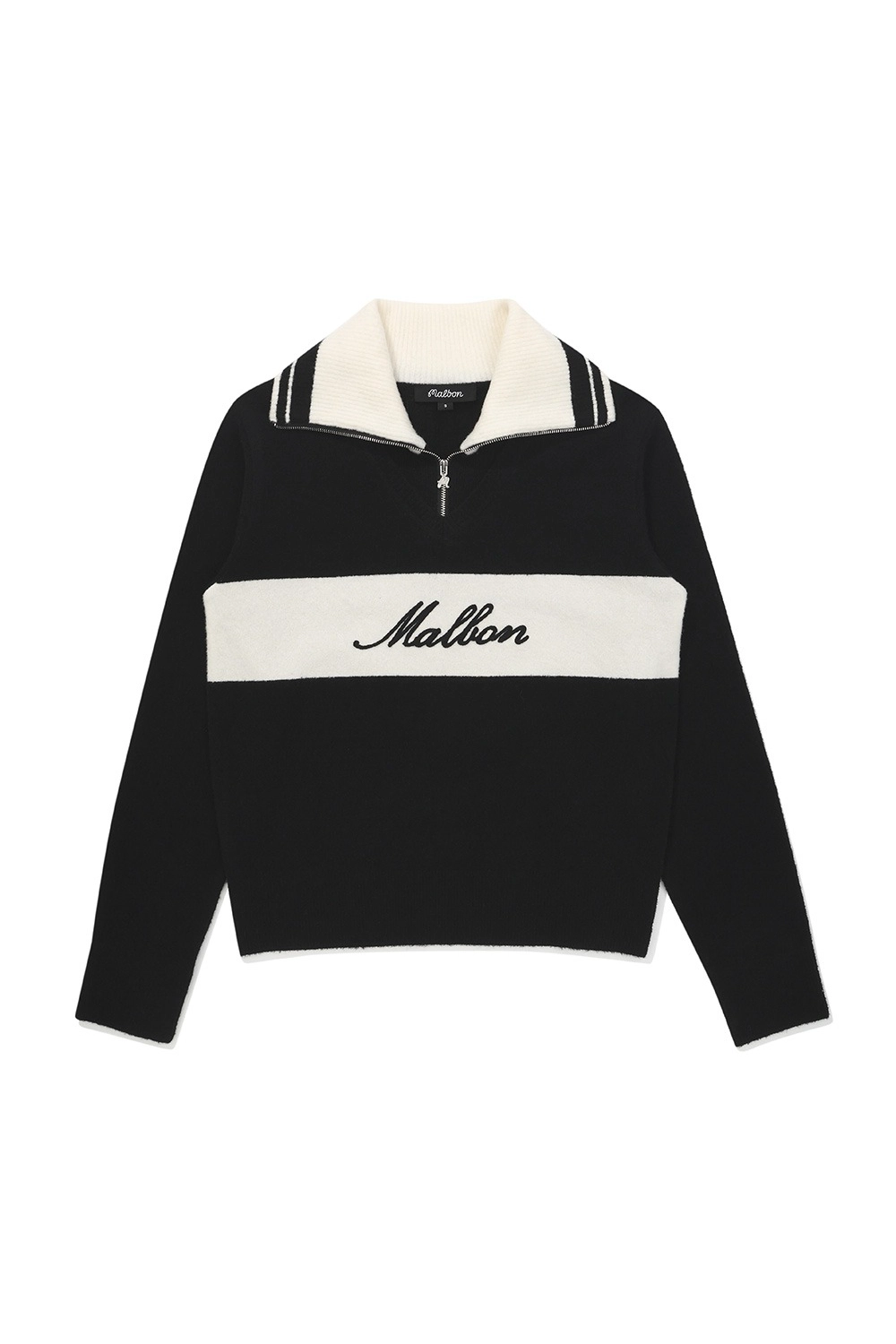 ZIP UP COLLAR LONG SLEEVED SWEATER-BLACK