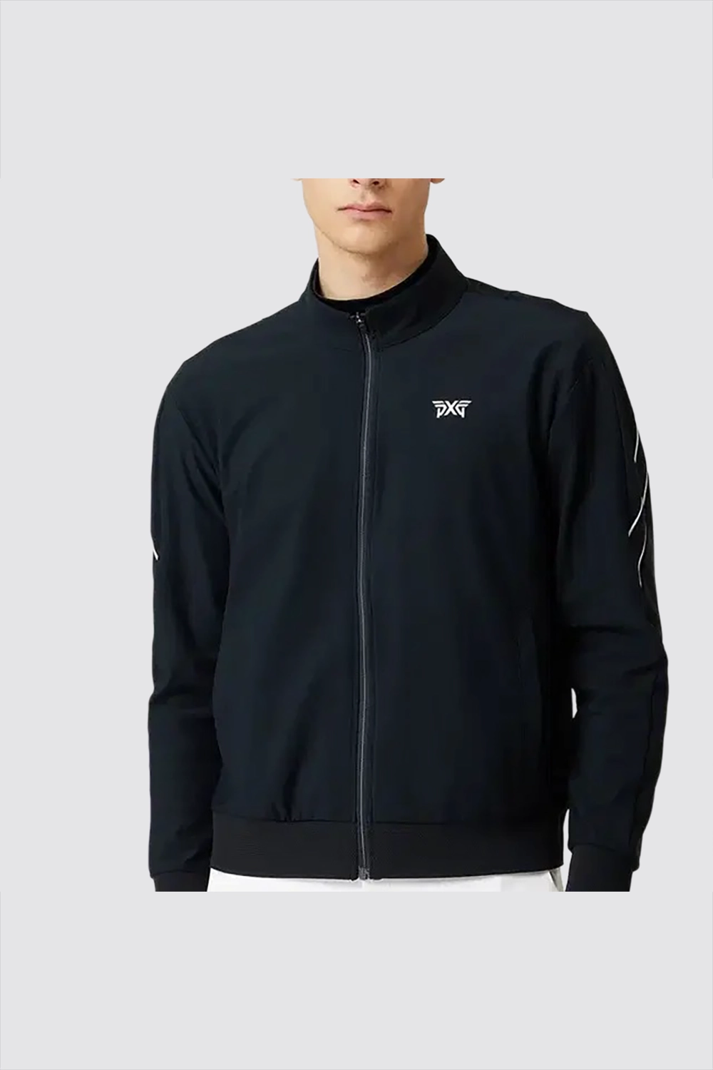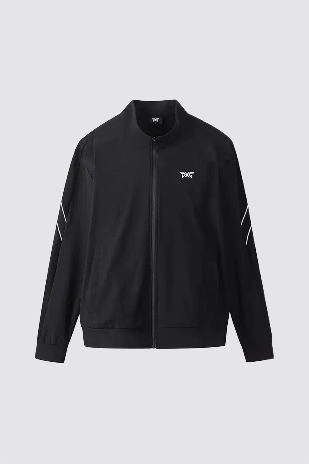 ZIPPERED CREW NECK JACKET-BLACK